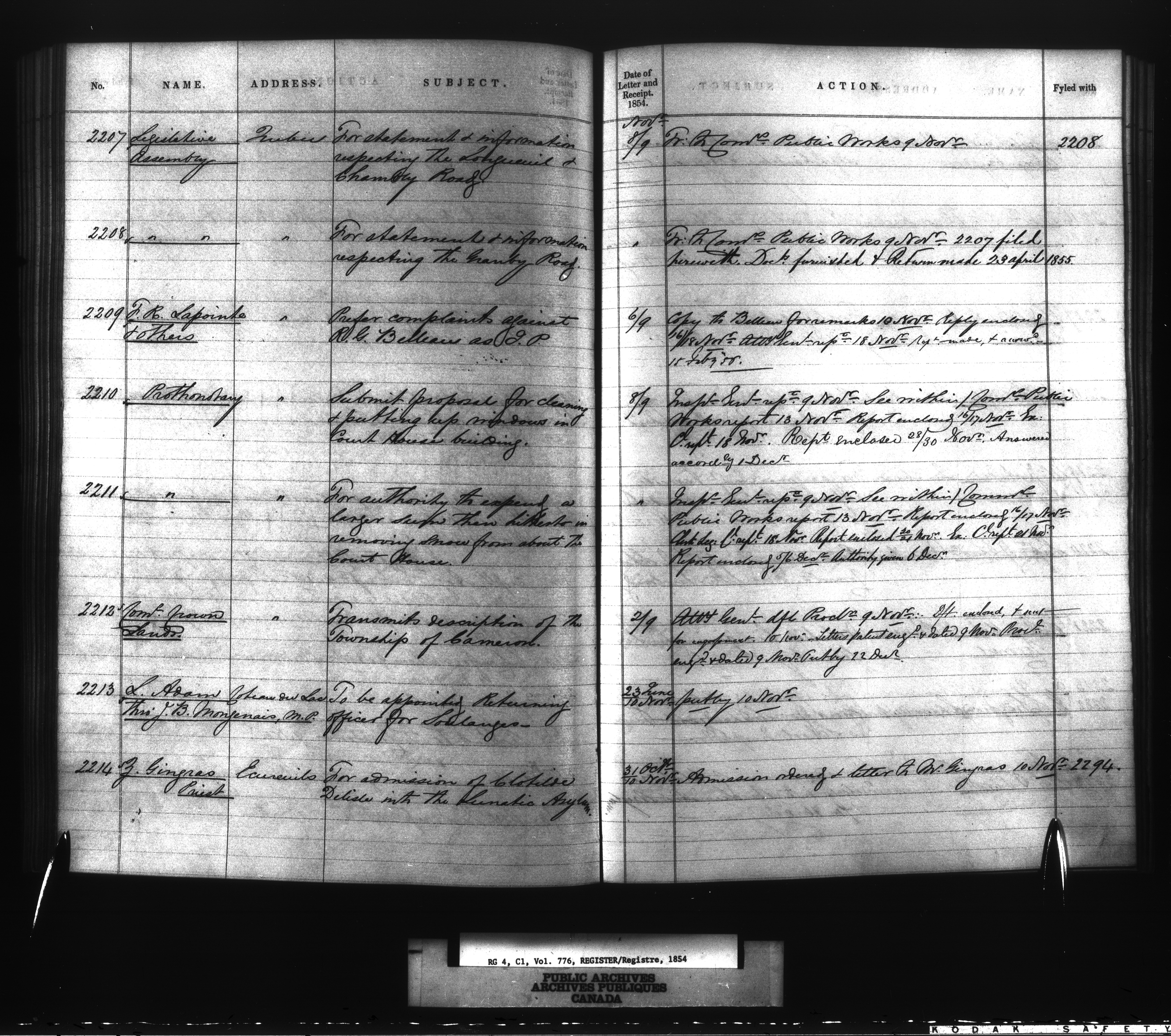 Provincial Secretary numbered correspondence files, Canada East : Registers and Indexes, 1839-1867 - 7739