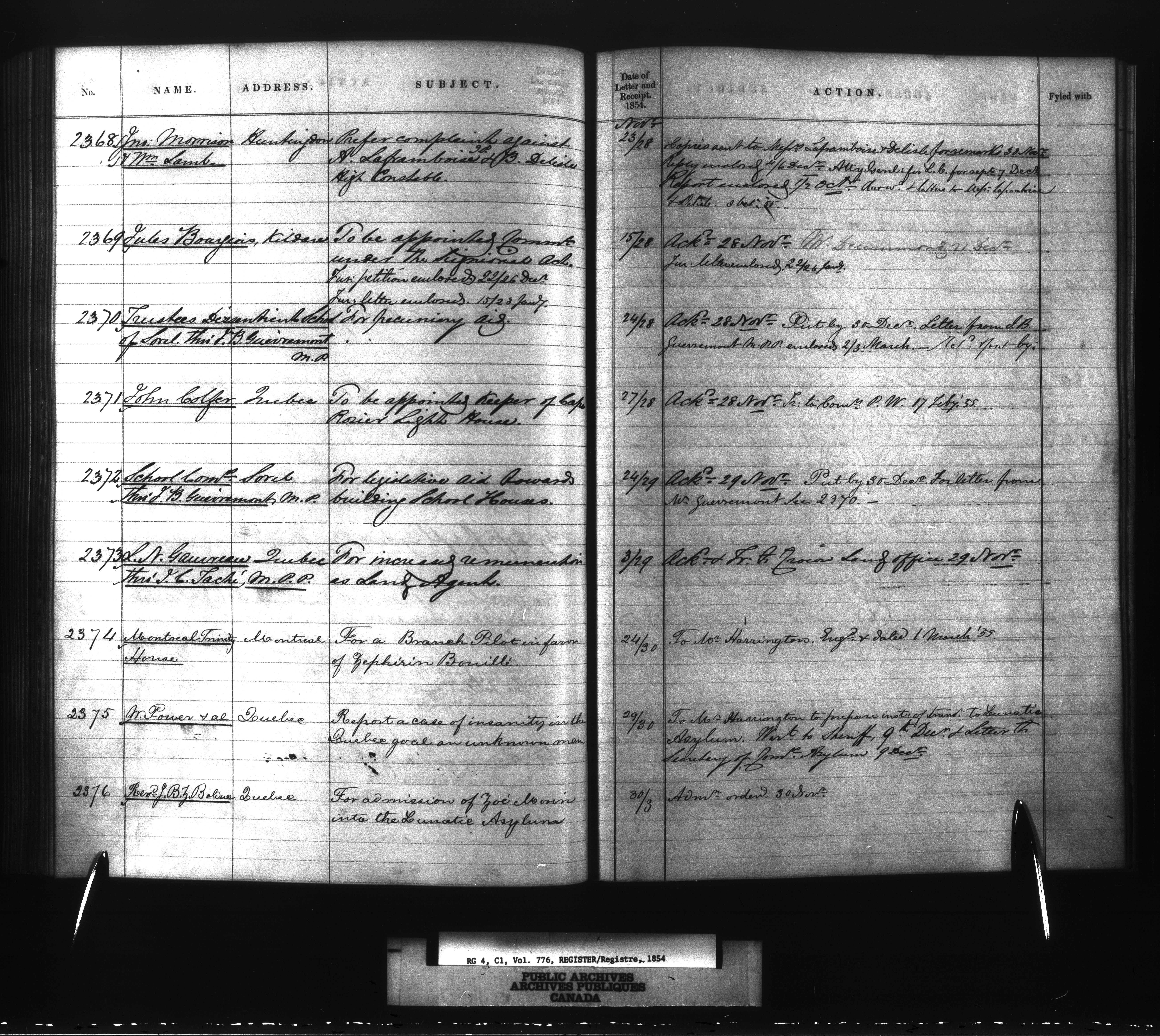 Provincial Secretary numbered correspondence files, Canada East : Registers and Indexes, 1839-1867 - 7739