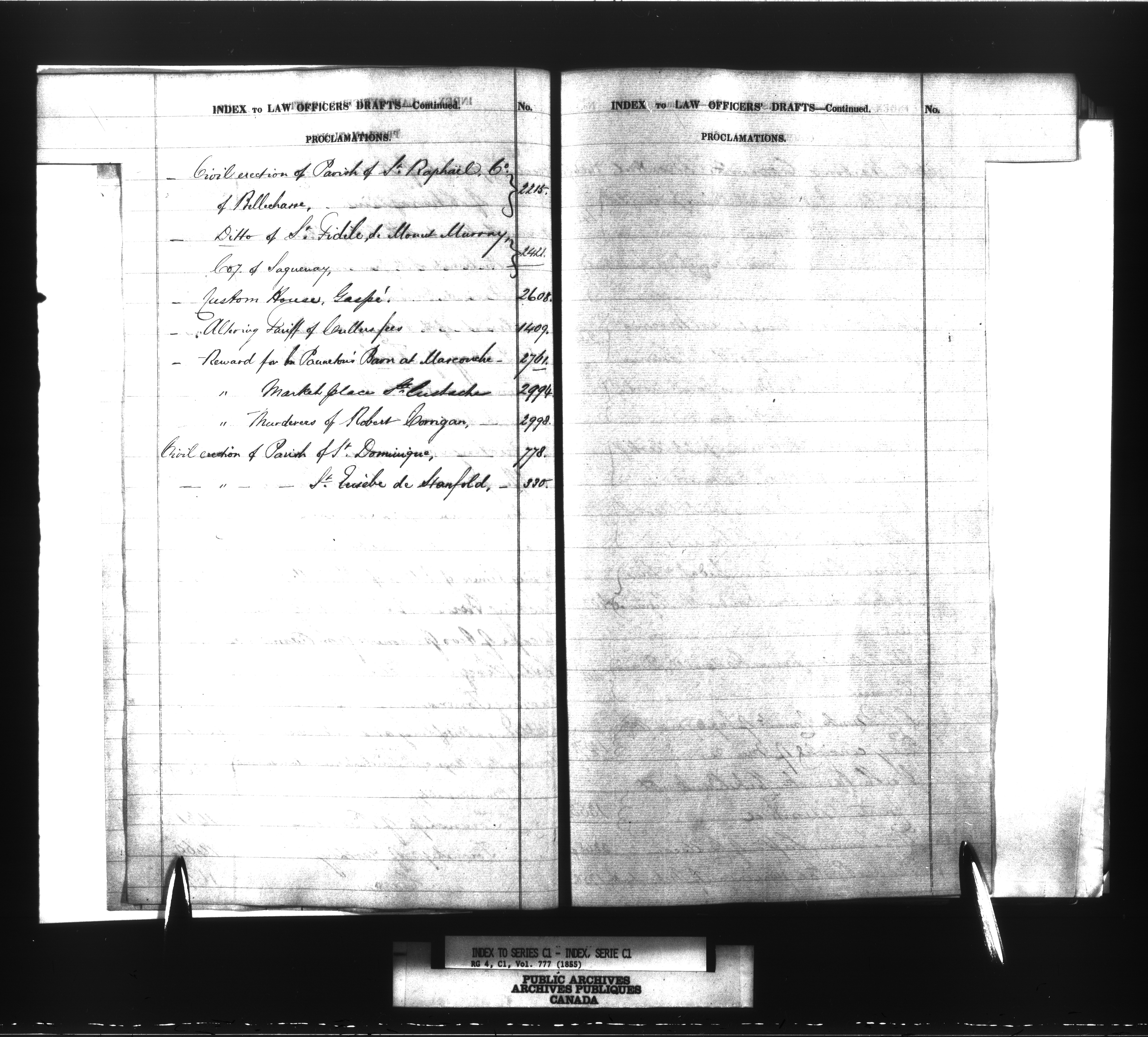 Provincial Secretary numbered correspondence files, Canada East : Registers and Indexes, 1839-1867 - 7739