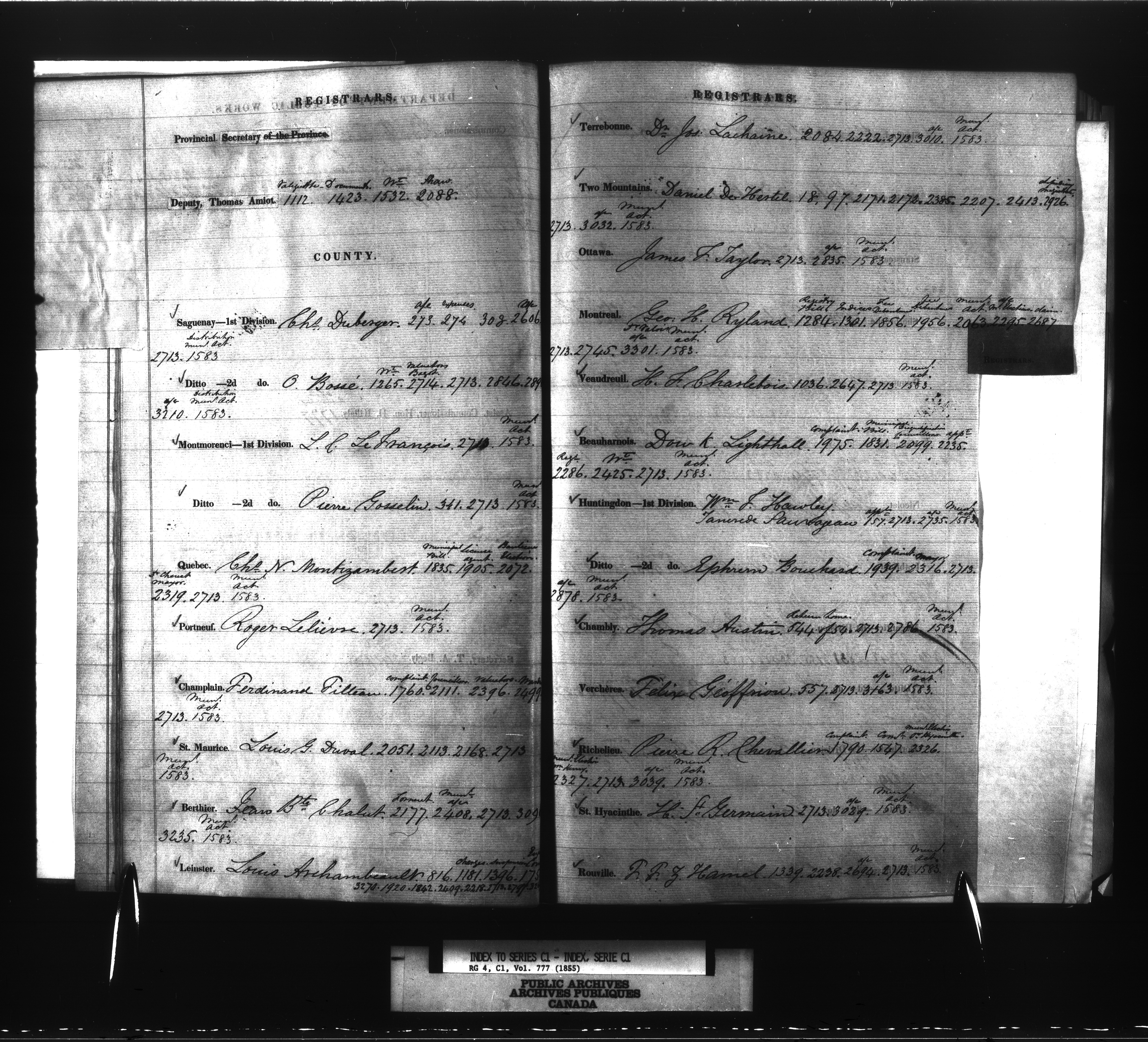 Provincial Secretary numbered correspondence files, Canada East : Registers and Indexes, 1839-1867 - 7739
