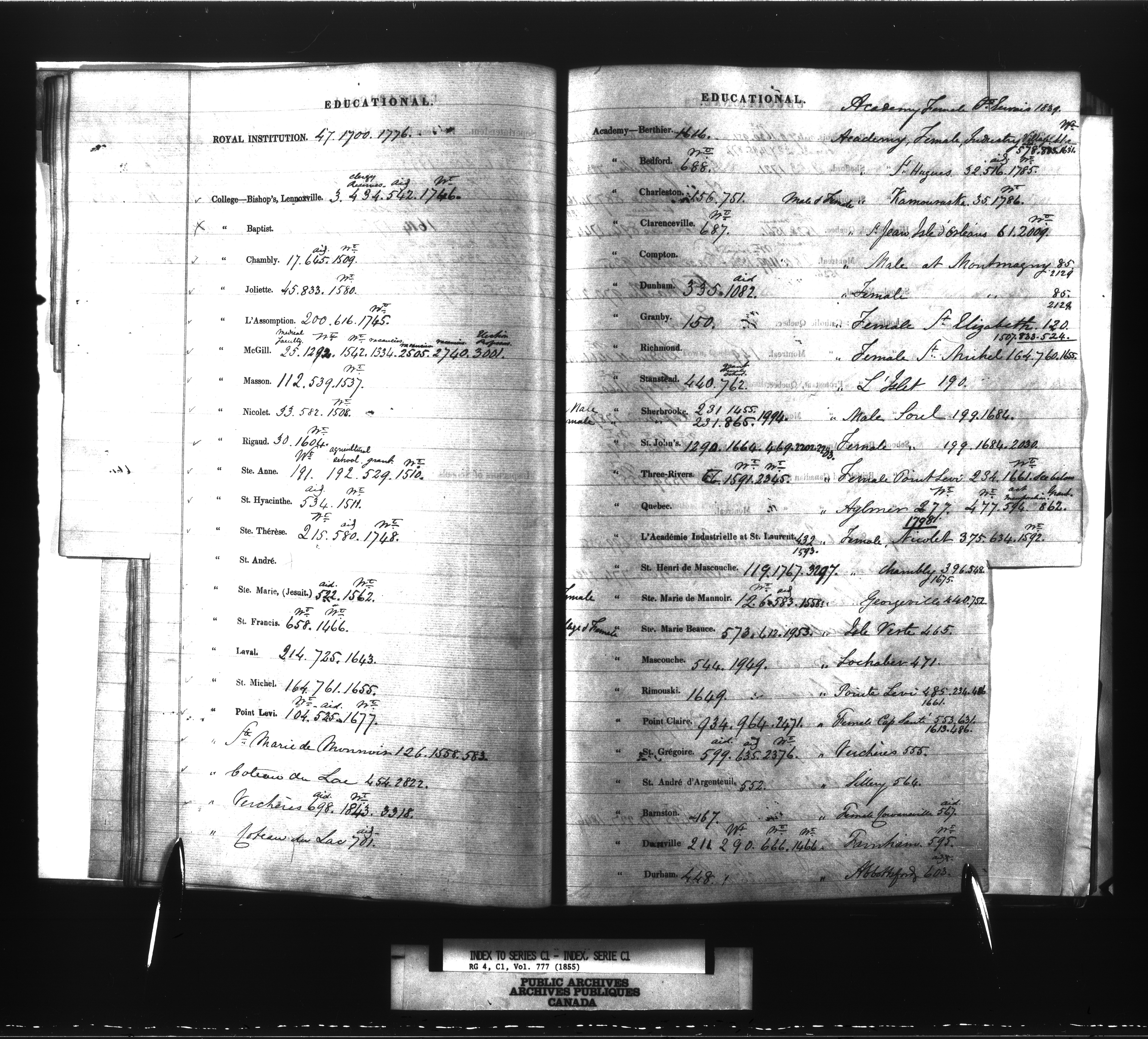 Provincial Secretary numbered correspondence files, Canada East : Registers and Indexes, 1839-1867 - 7739