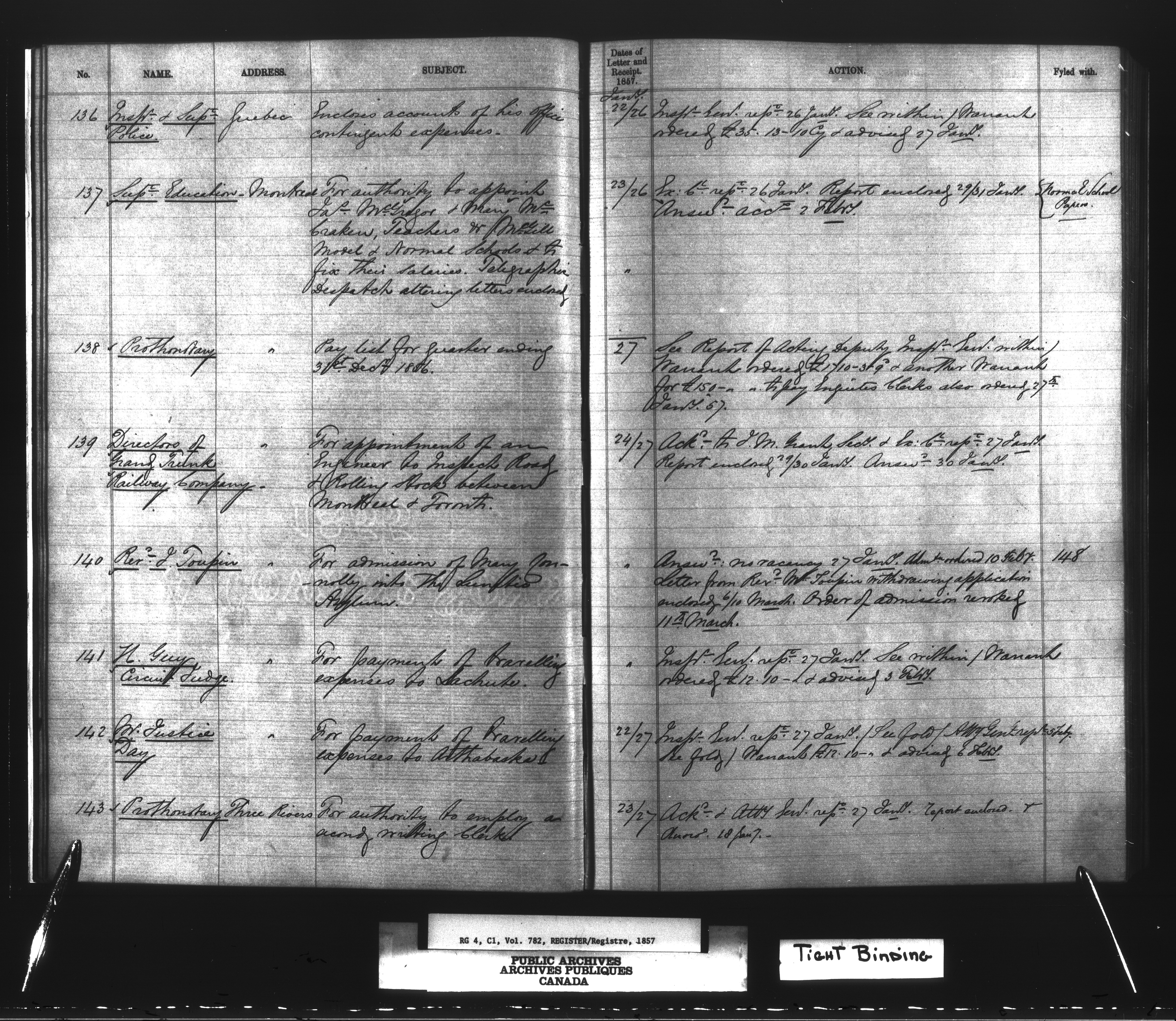 Provincial Secretary numbered correspondence files, Canada East : Registers and Indexes, 1839-1867 - 7742