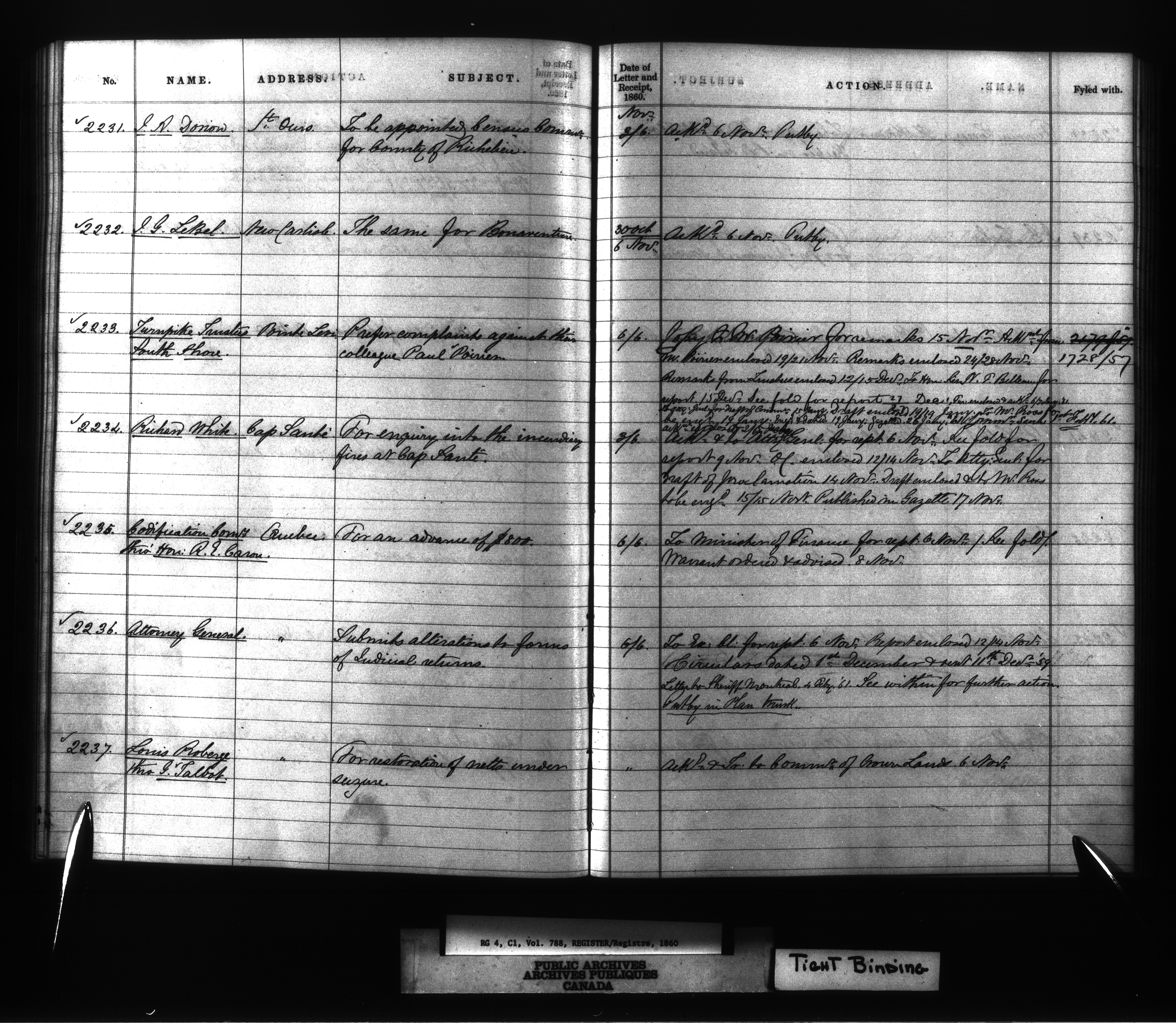Provincial Secretary numbered correspondence files, Canada East : Registers and Indexes, 1839-1867 - 7746