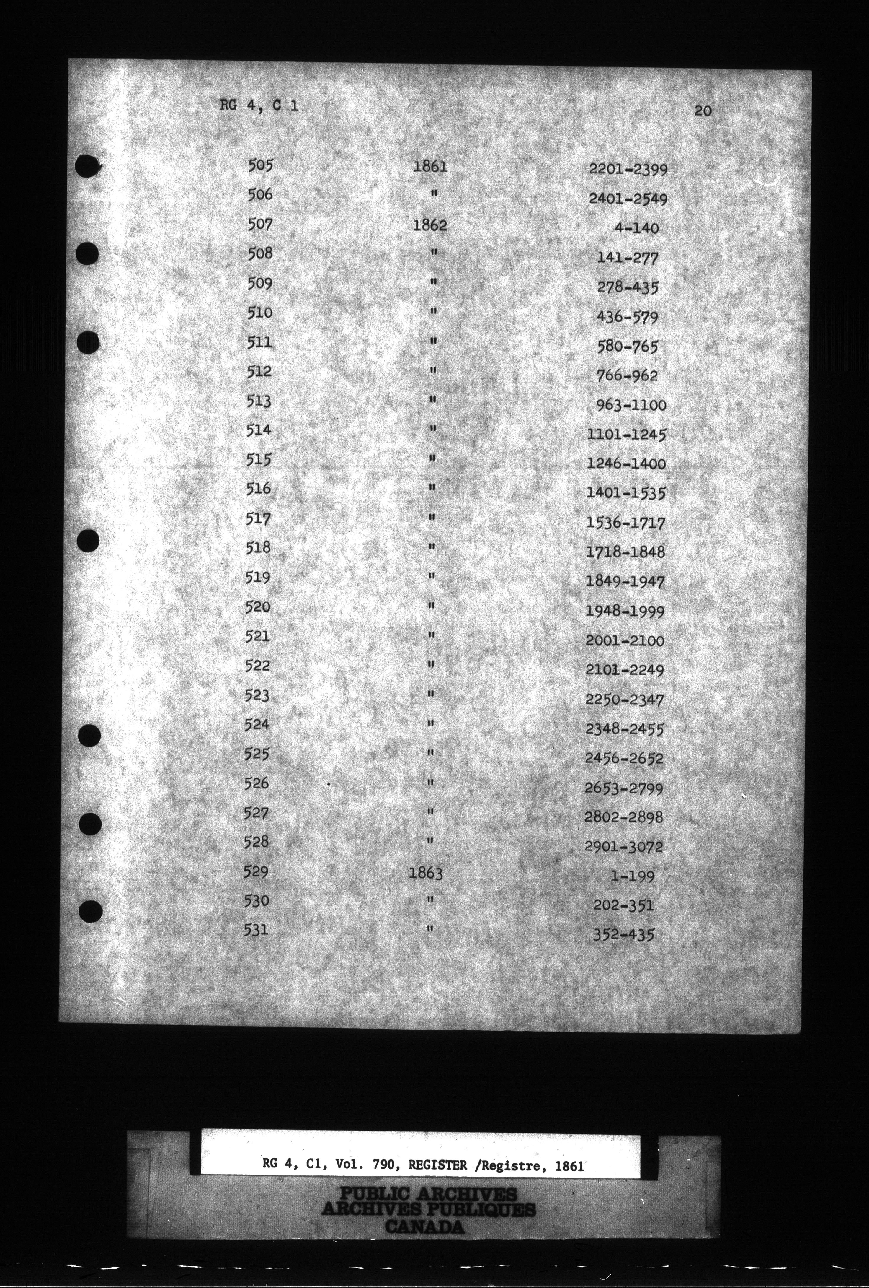 Provincial Secretary numbered correspondence files, Canada East : Registers and Indexes, 1839-1867 - 7747