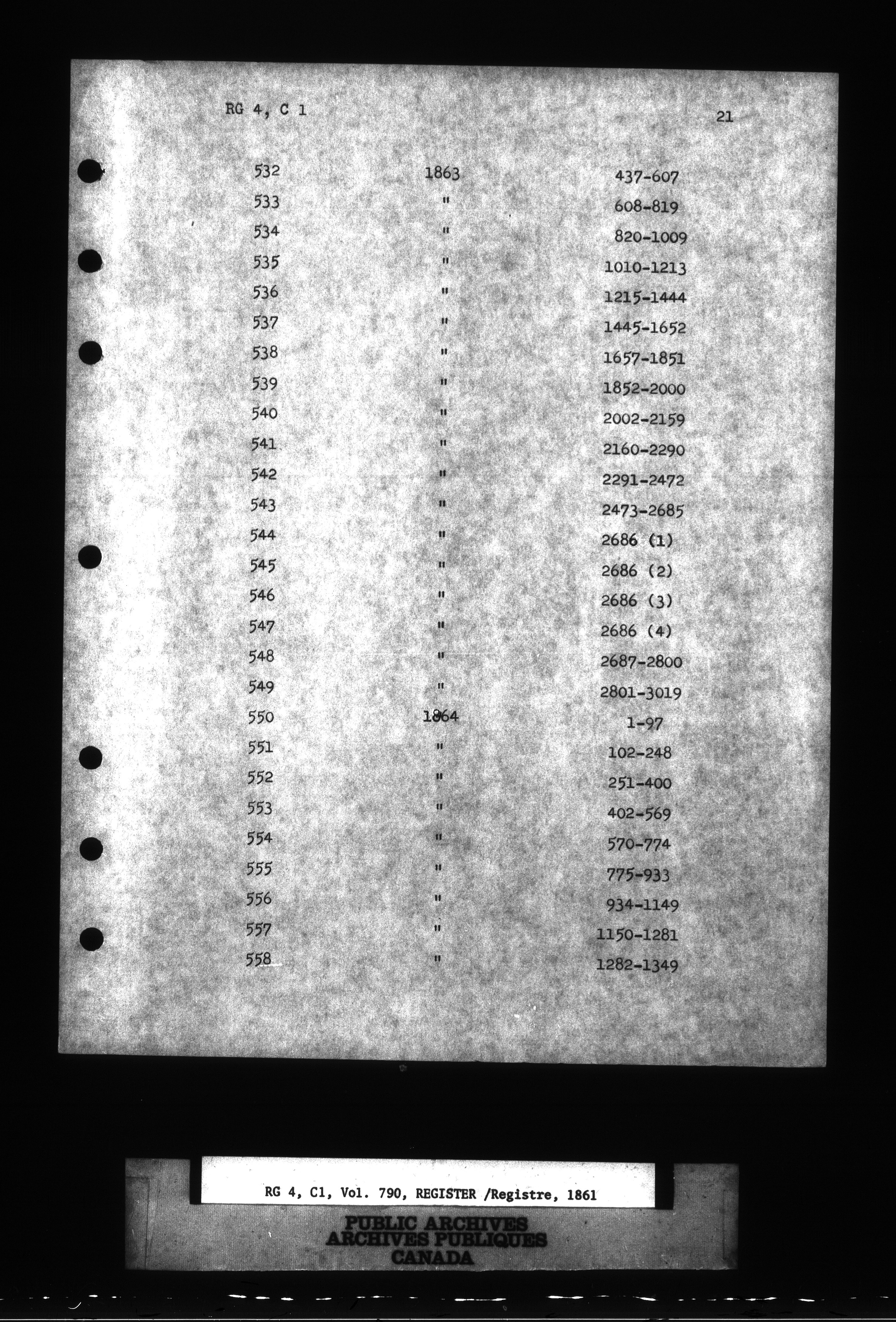 Provincial Secretary numbered correspondence files, Canada East : Registers and Indexes, 1839-1867 - 7747