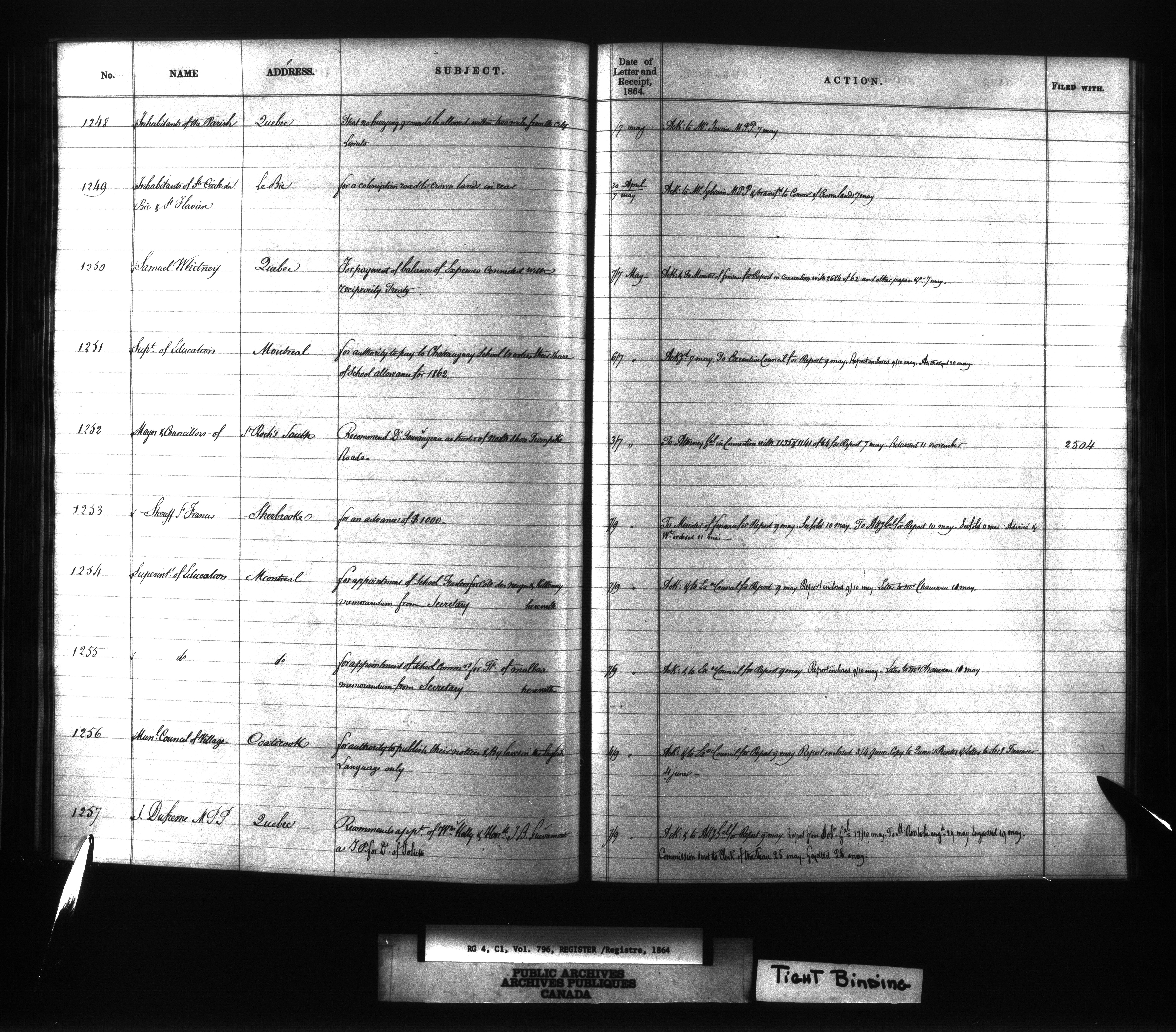 Canada East : Provincial Secretary numbered correspondence files, 1839-1867 : C-7749