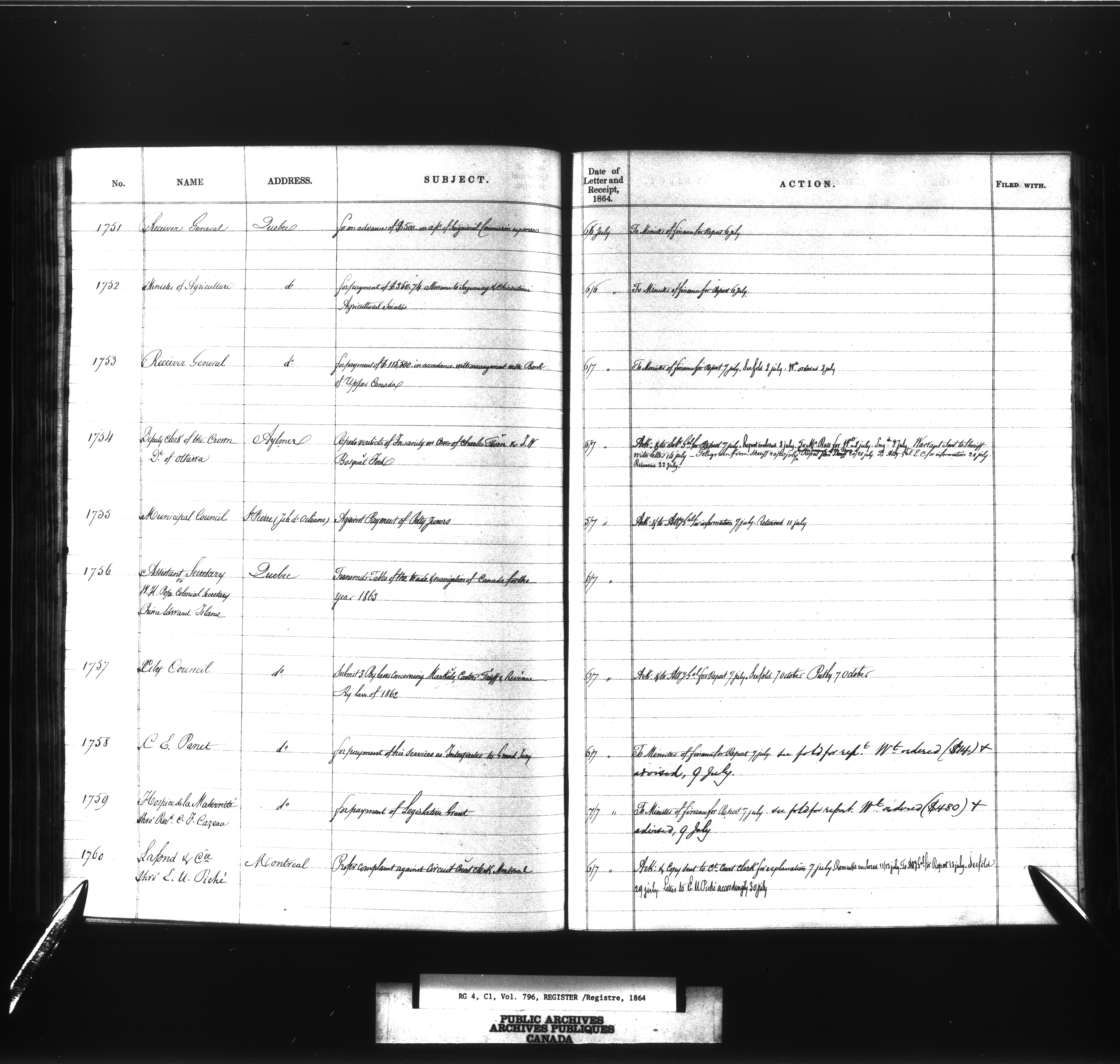 Provincial Secretary numbered correspondence files, Canada East : Registers and Indexes, 1839-1867 - 7750