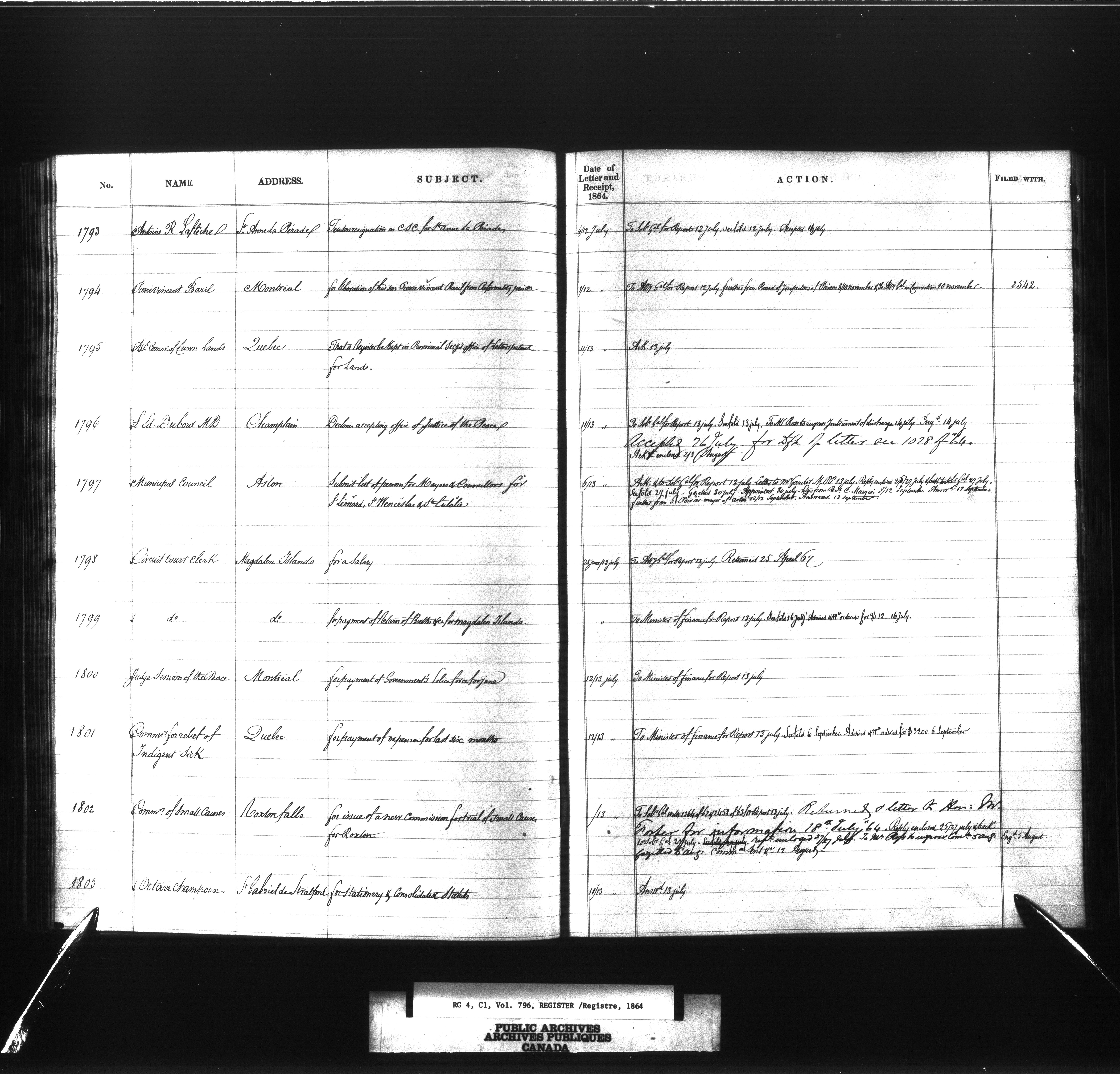 Provincial Secretary numbered correspondence files, Canada East : Registers and Indexes, 1839-1867 - 7750