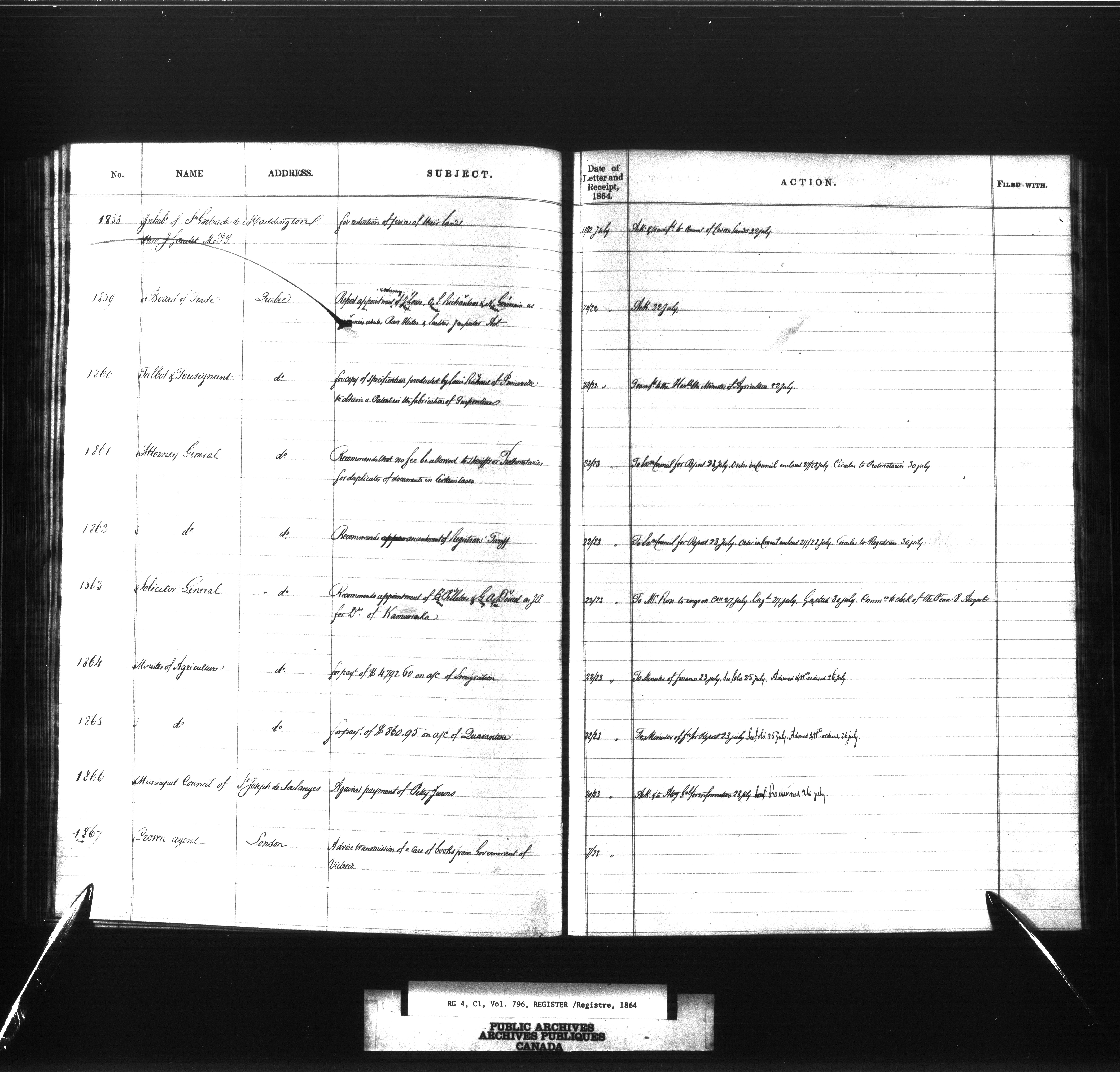 Provincial Secretary numbered correspondence files, Canada East : Registers and Indexes, 1839-1867 - 7750