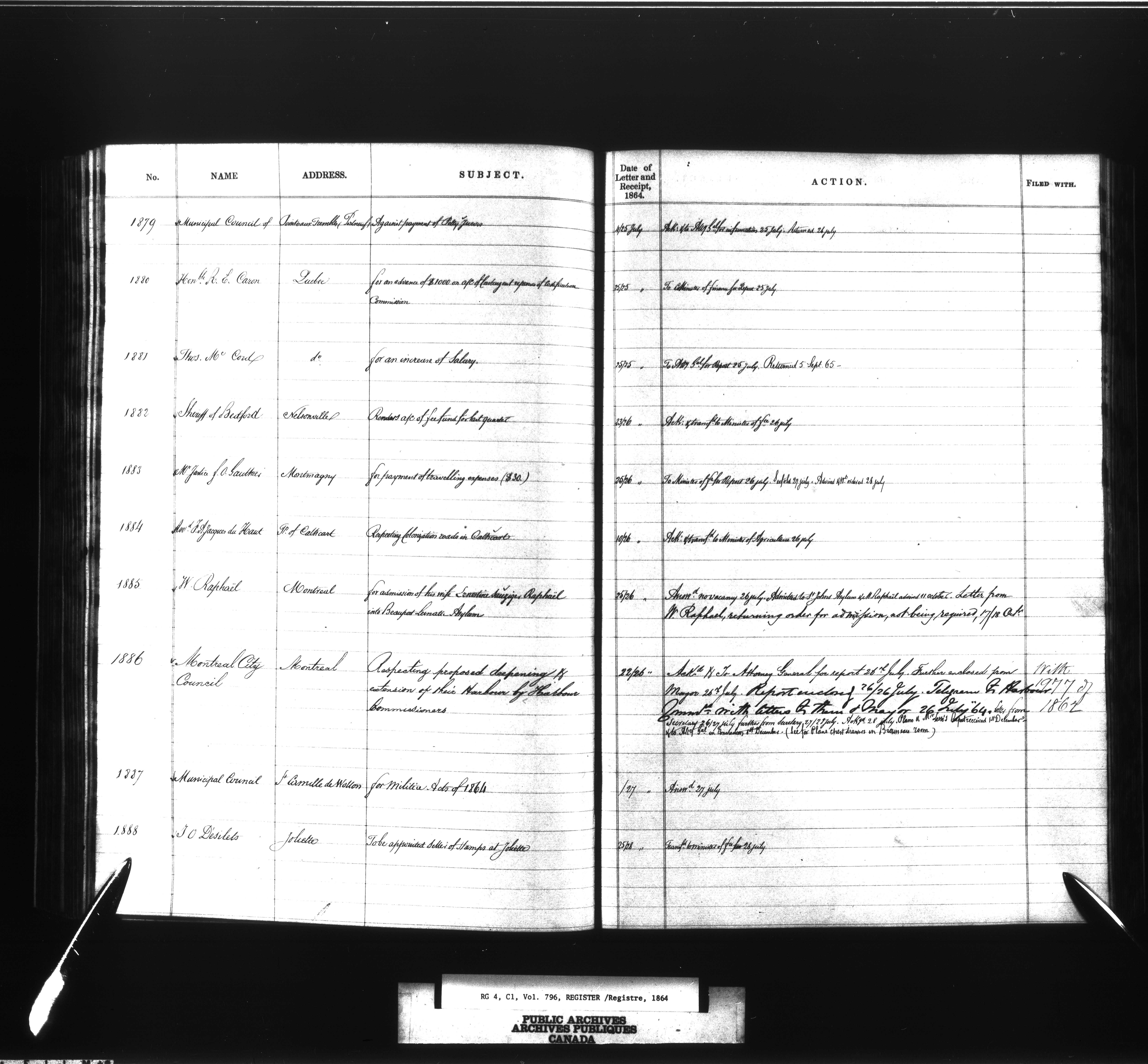 Provincial Secretary numbered correspondence files, Canada East : Registers and Indexes, 1839-1867 - 7750