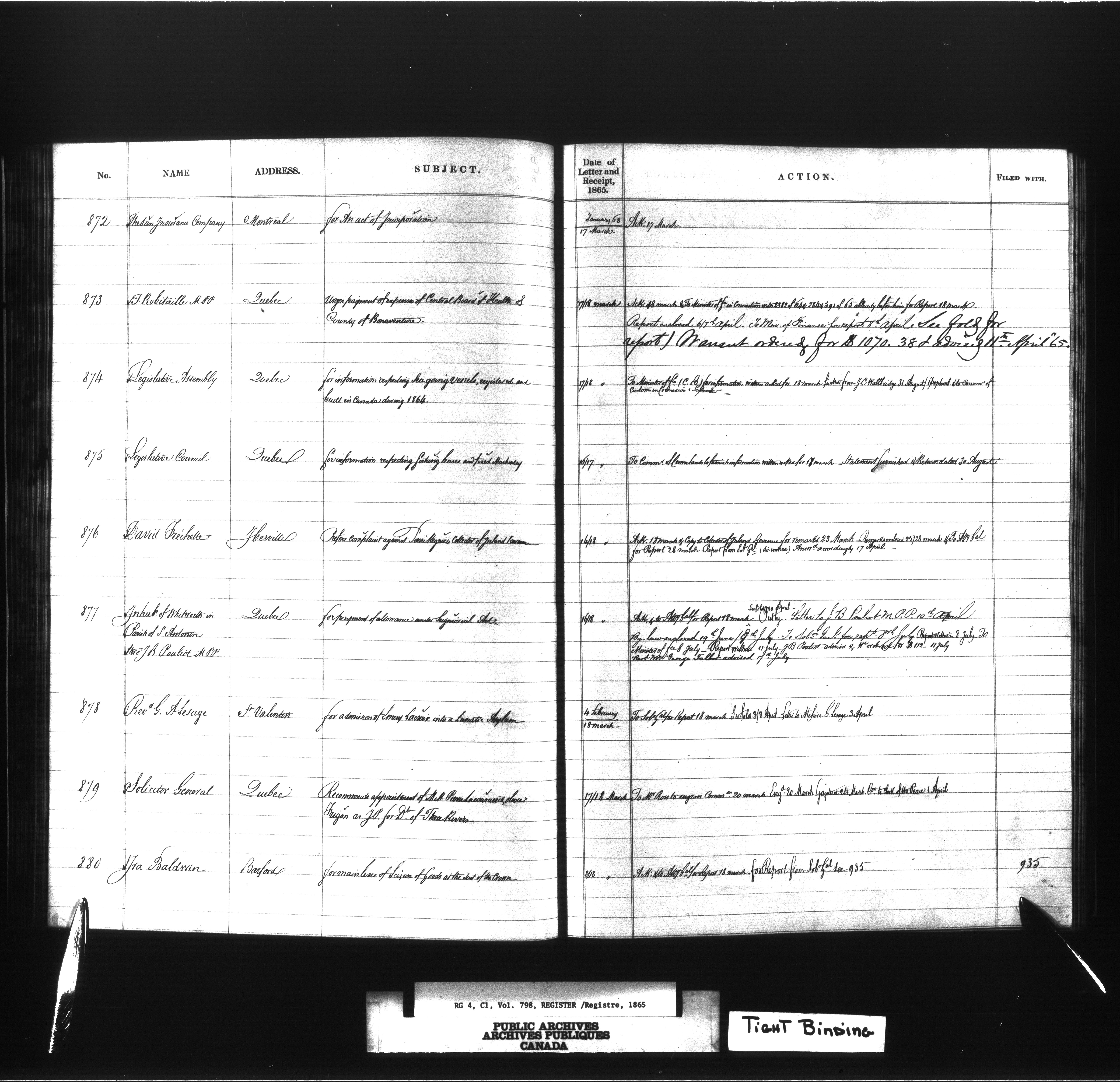 Provincial Secretary numbered correspondence files, Canada East : Registers and Indexes, 1839-1867 - 7750