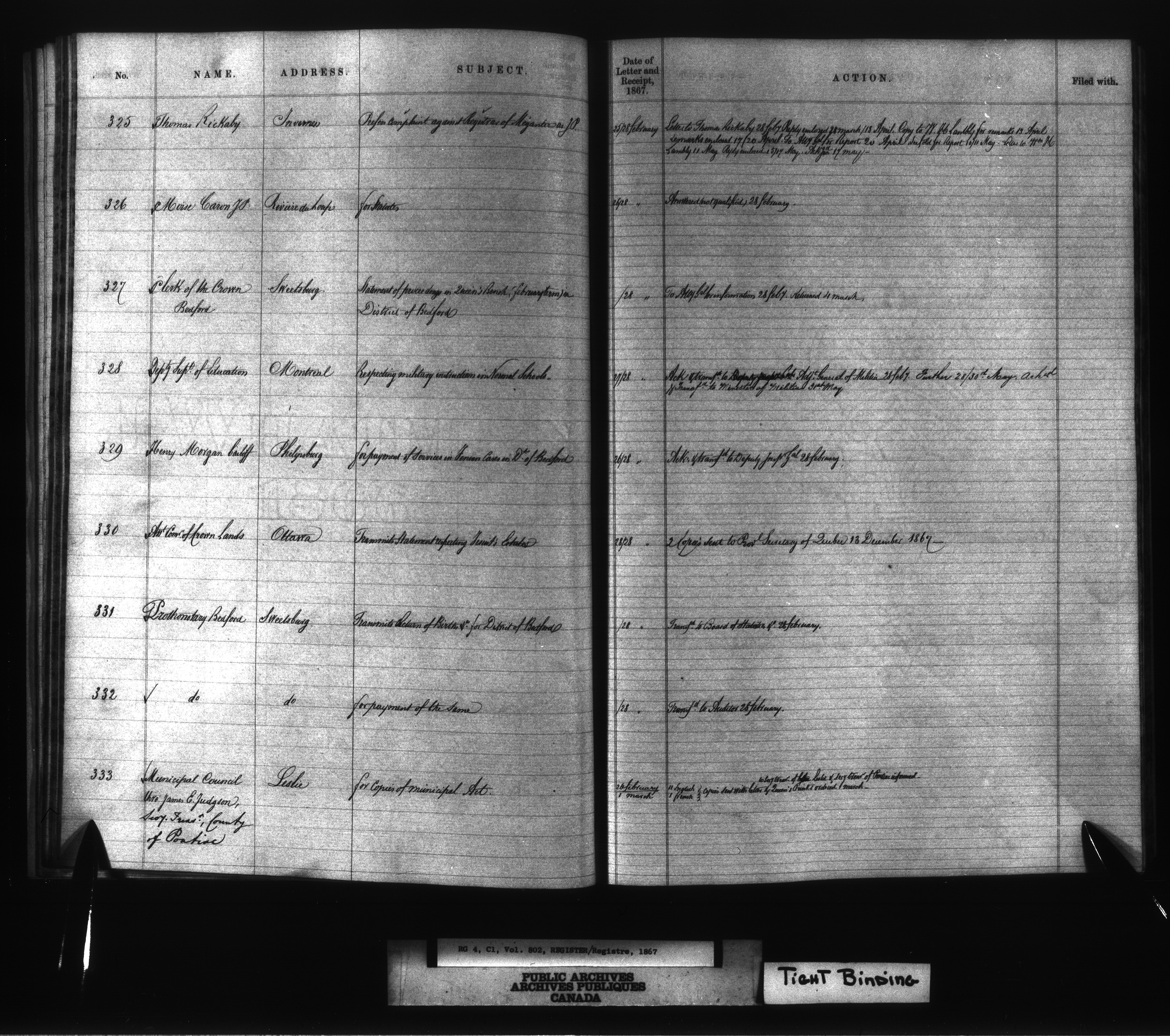Provincial Secretary numbered correspondence files, Canada East : Registers and Indexes, 1839-1867 - 7752