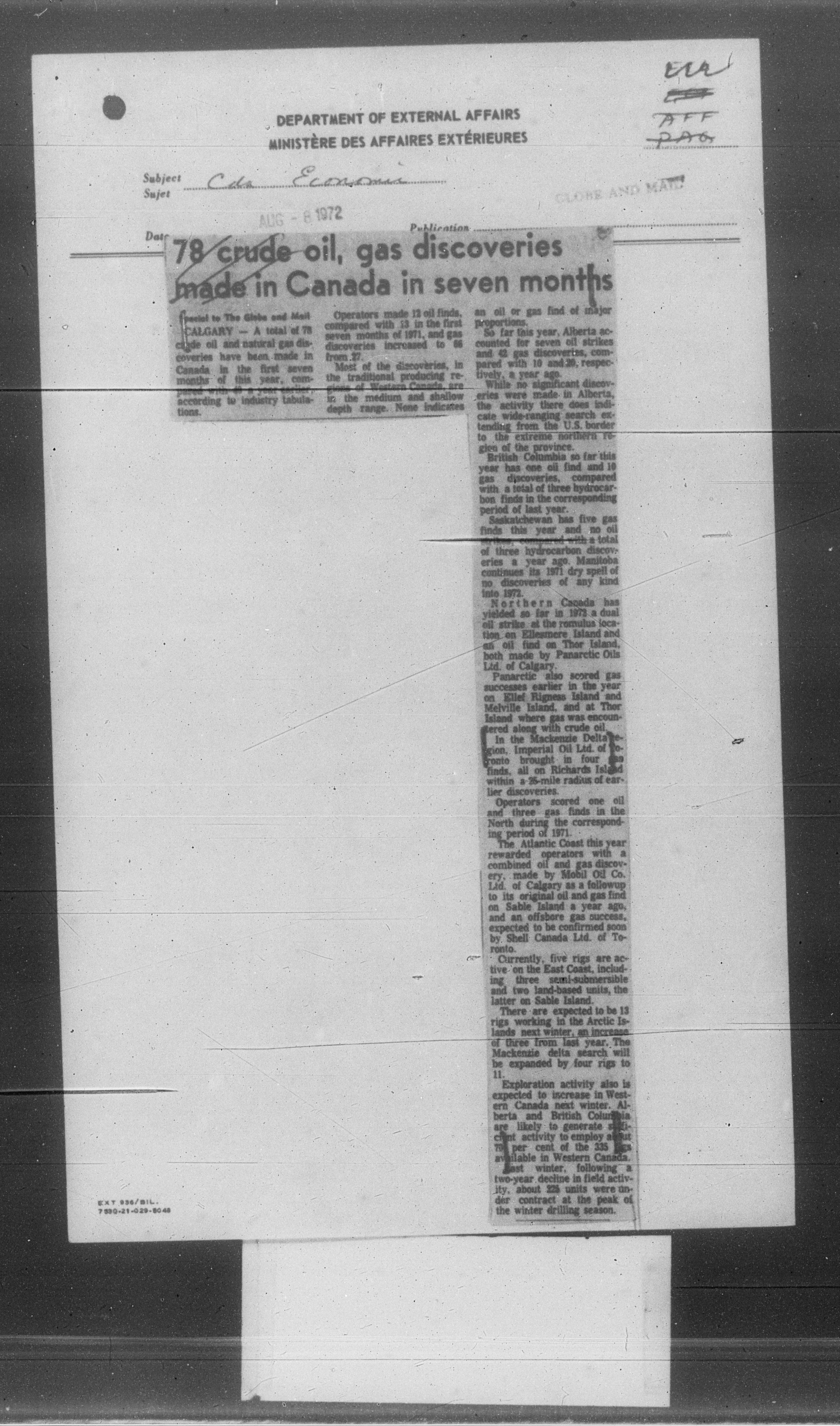 Department of External Affairs Library : newspaper clippings and manuals : C-7755