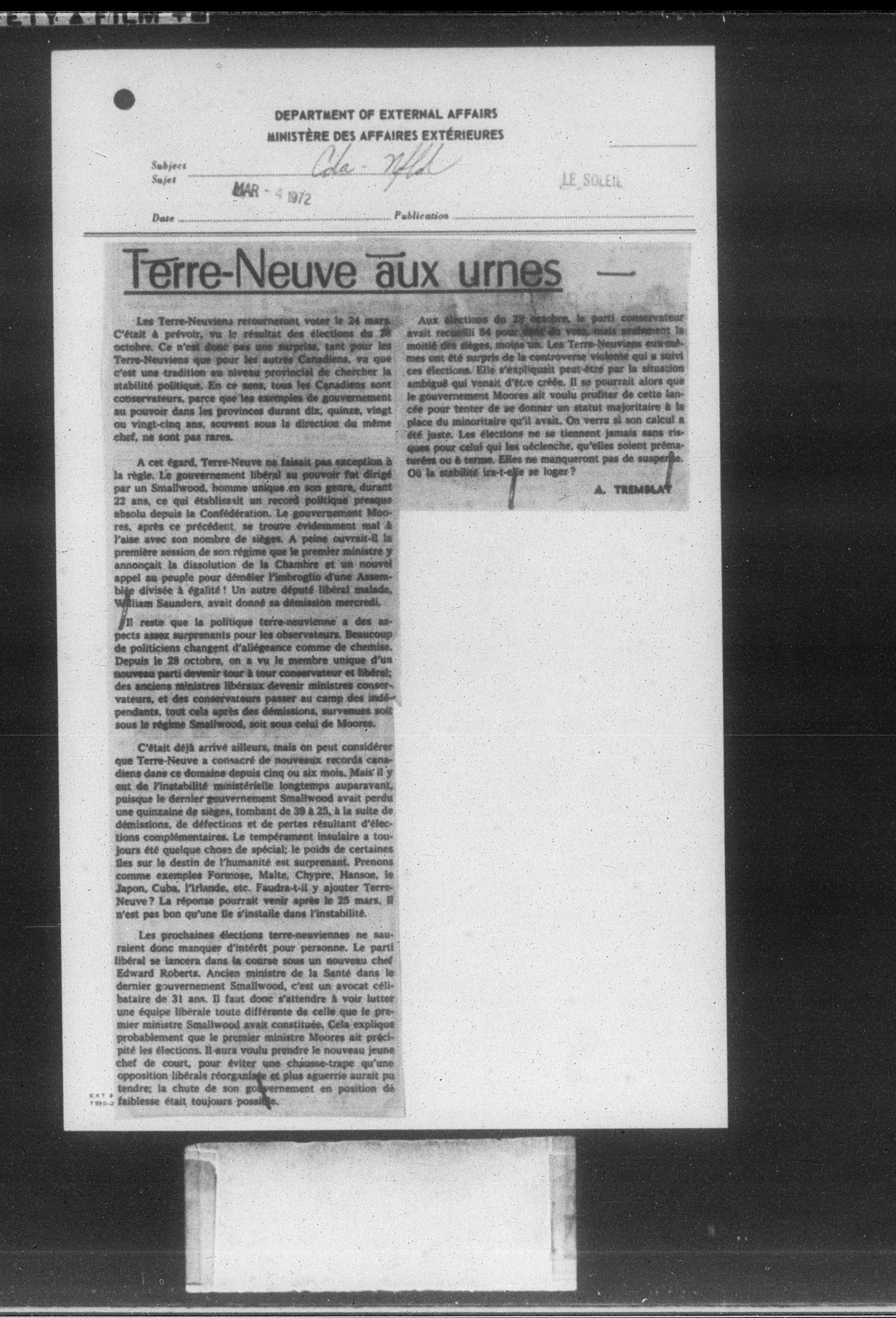 Department of External Affairs Library : newspaper clippings and manuals - 7756