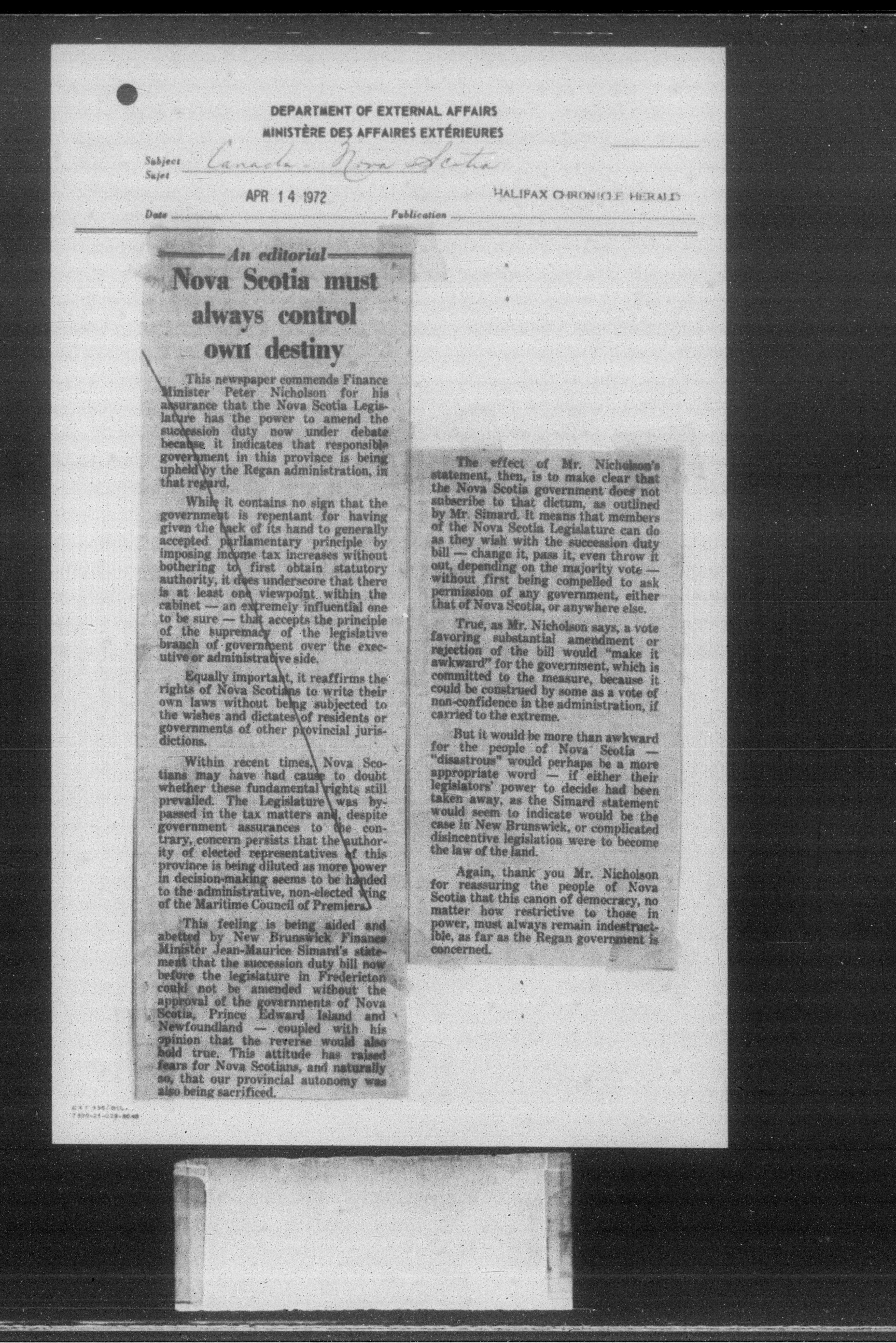 Department of External Affairs Library : newspaper clippings and manuals - 7756