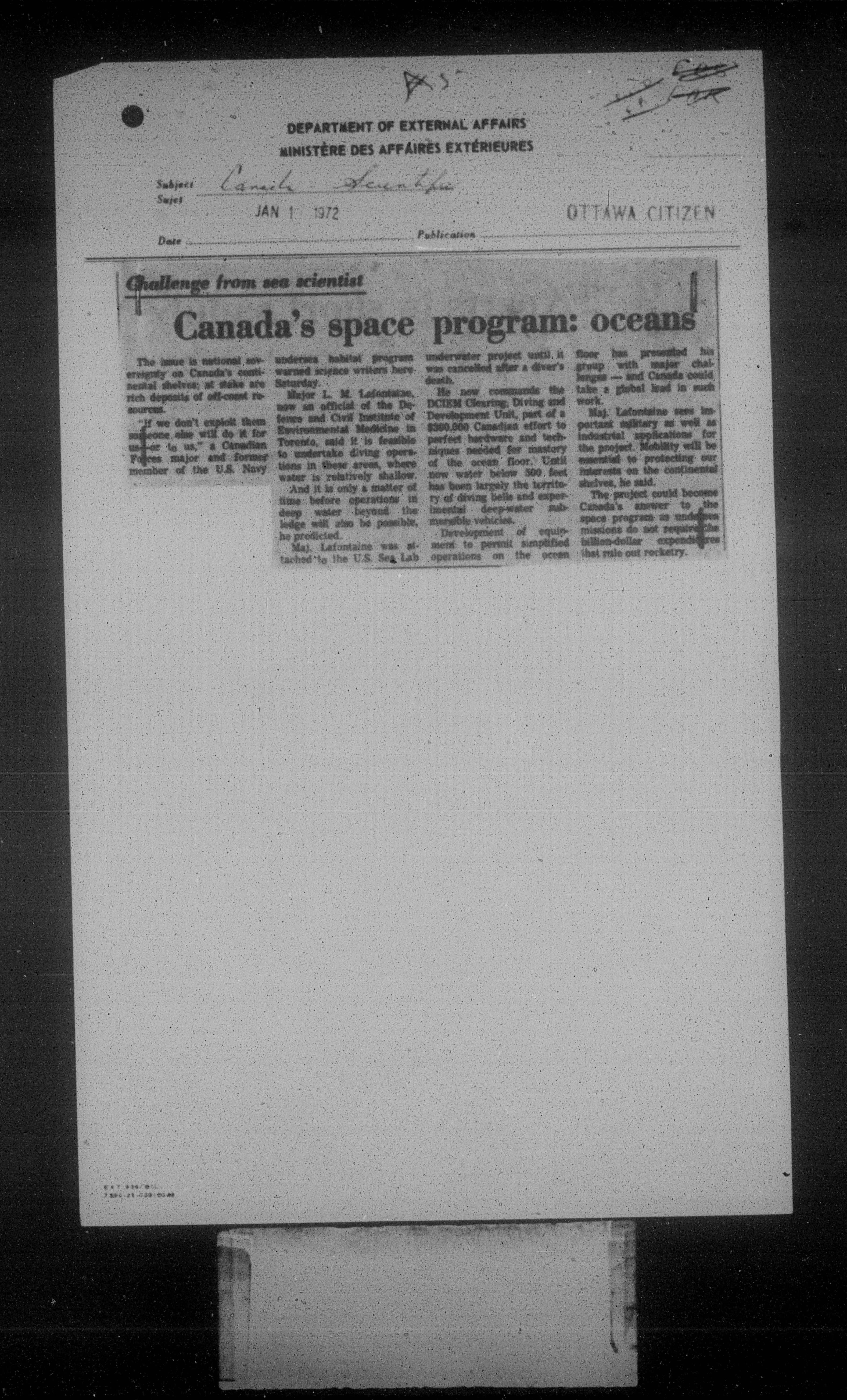 Department of External Affairs Library : newspaper clippings and manuals : C-7757