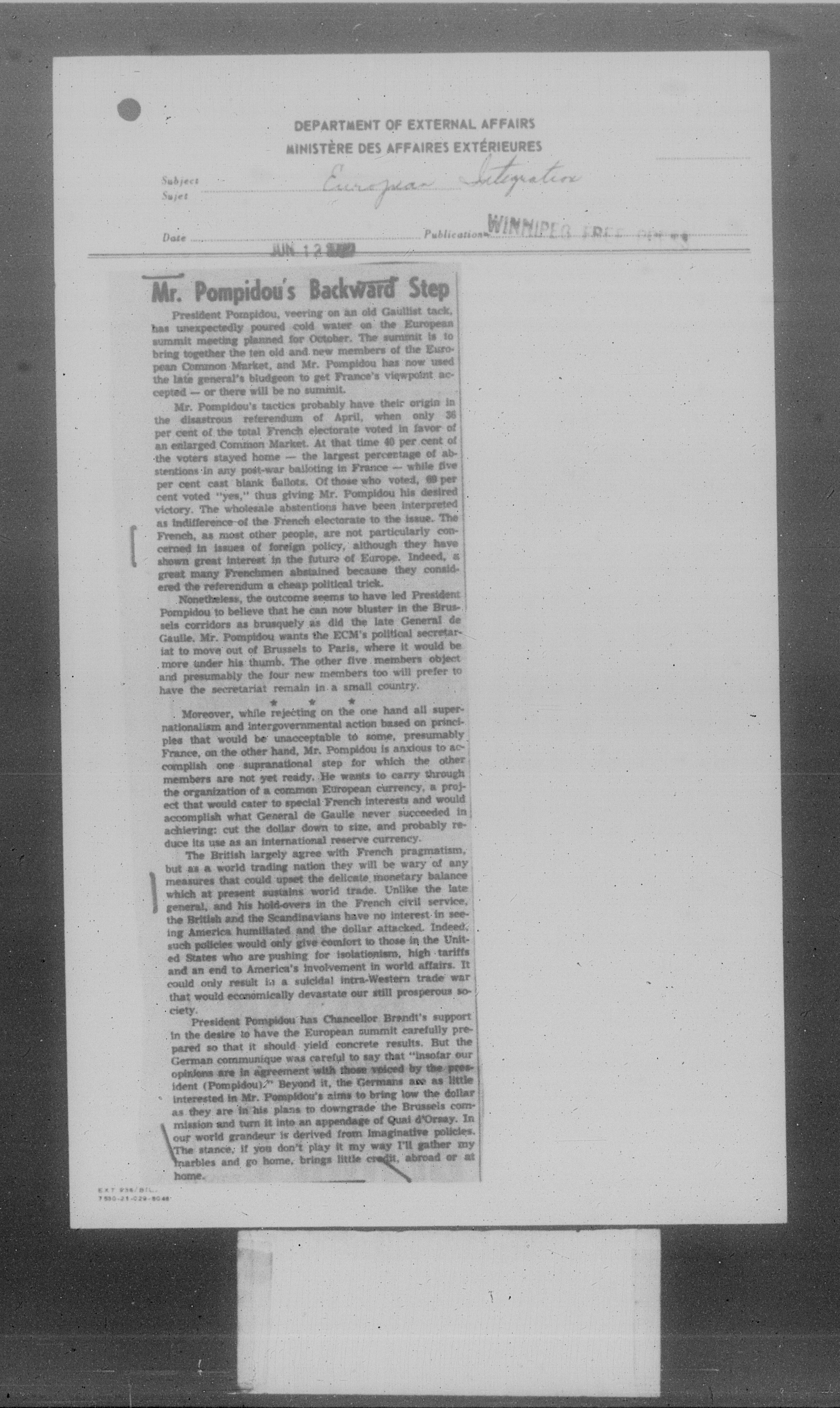 Department of External Affairs Library : newspaper clippings and manuals - 7759