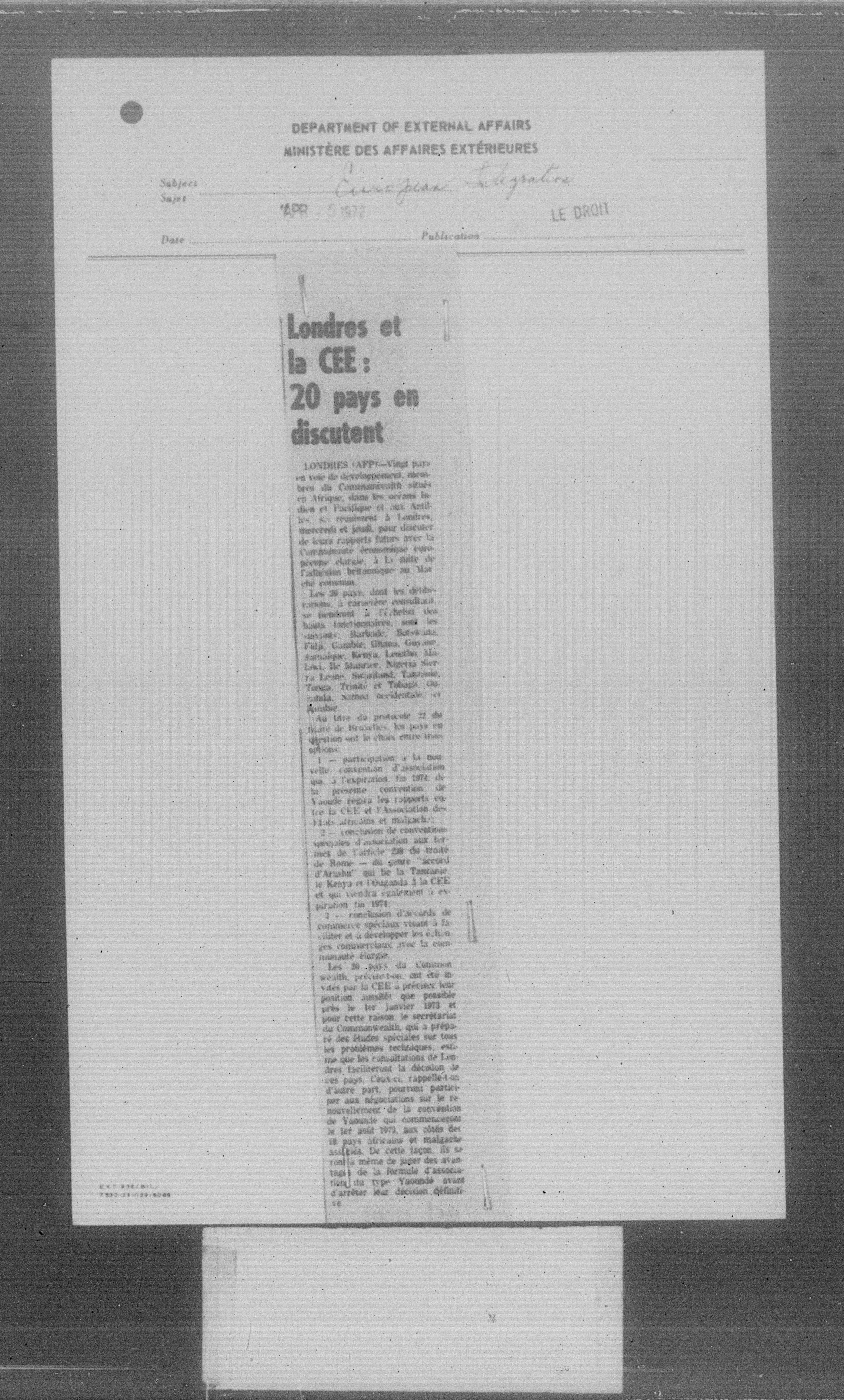 Department of External Affairs Library : newspaper clippings and manuals - 7759
