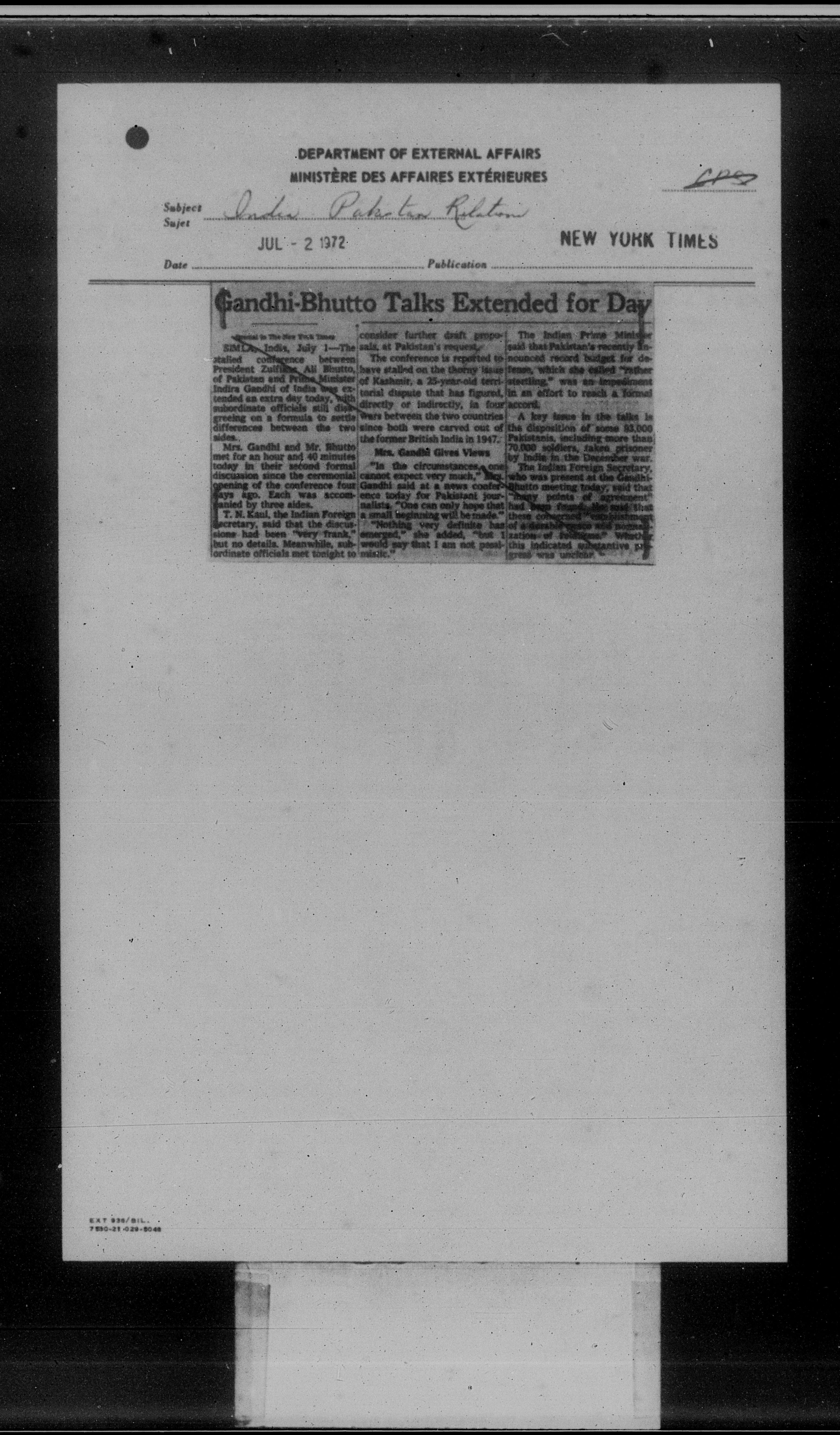 Department of External Affairs Library : newspaper clippings and manuals - 7760