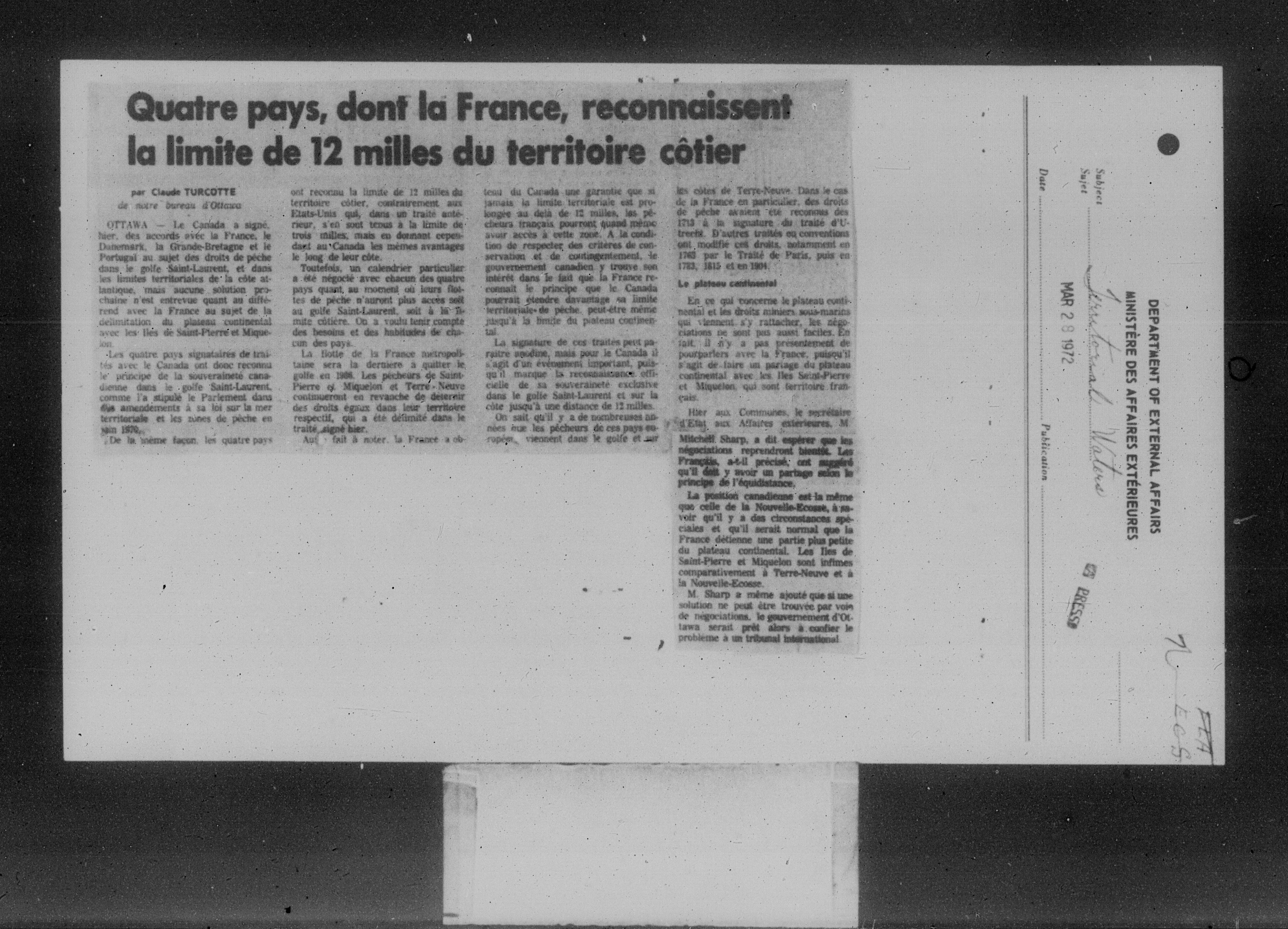 Department of External Affairs Library : newspaper clippings and manuals - 7764
