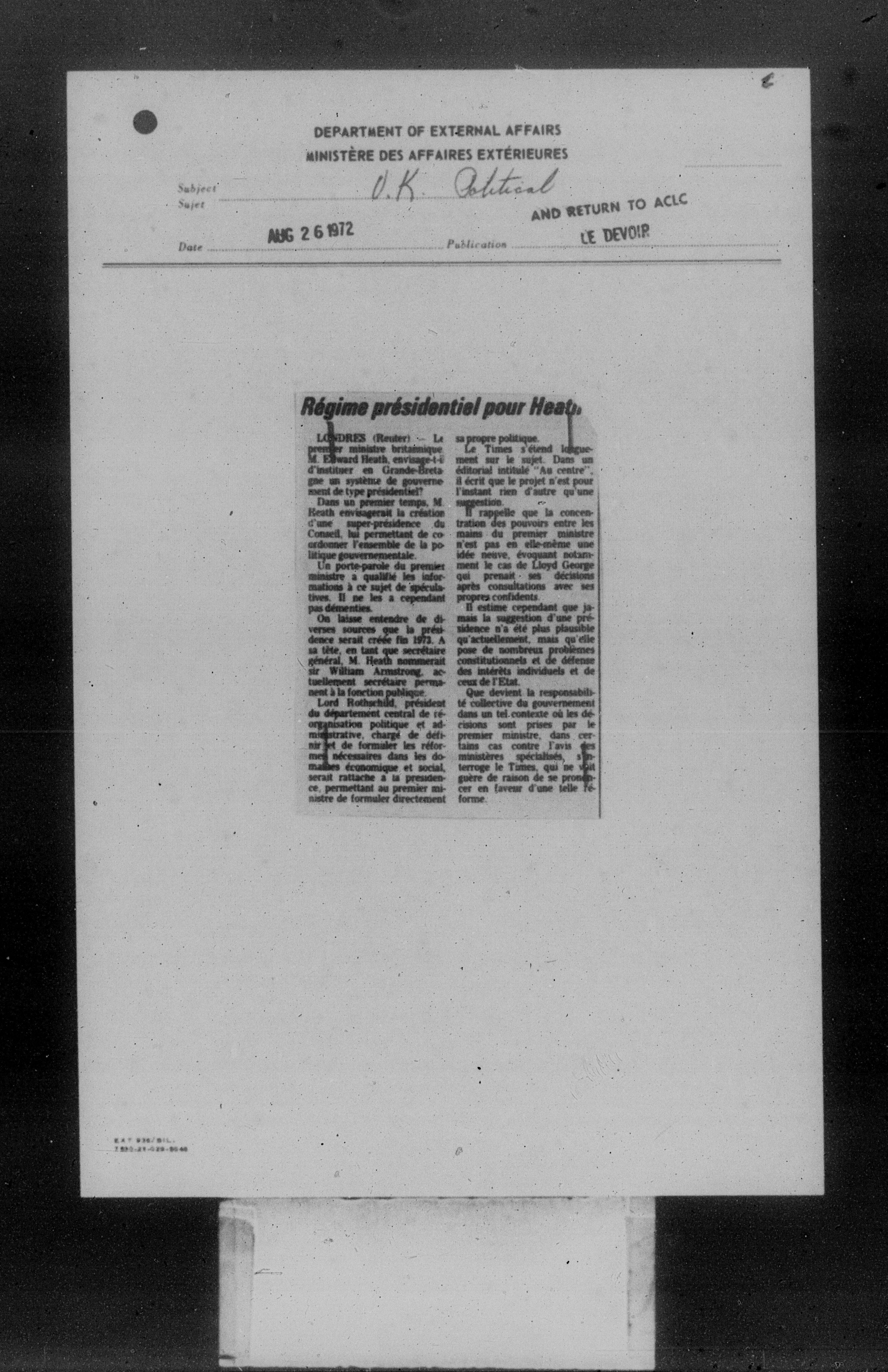 Department of External Affairs Library : newspaper clippings and manuals - 7764