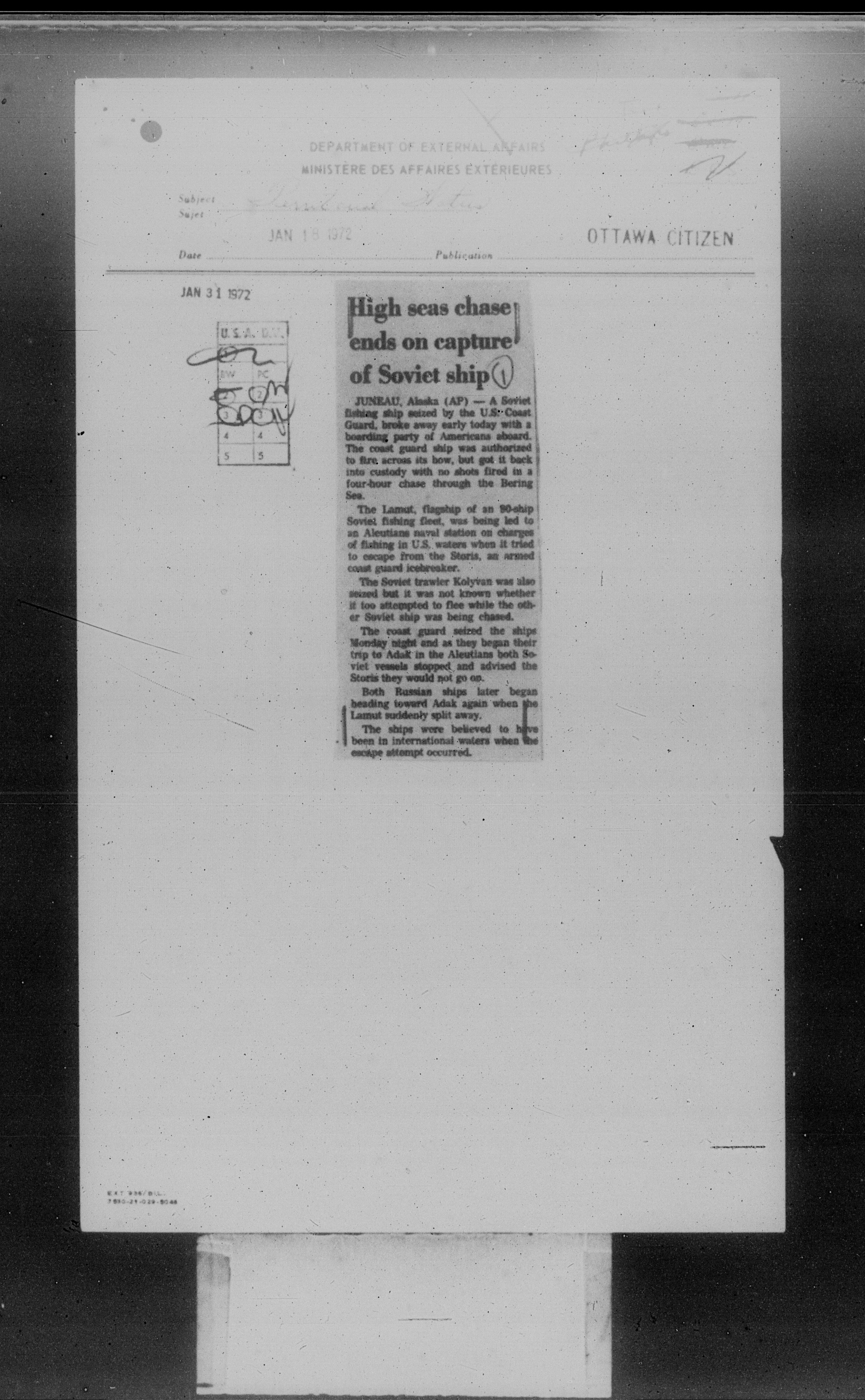 Department of External Affairs Library : newspaper clippings and manuals - 7764