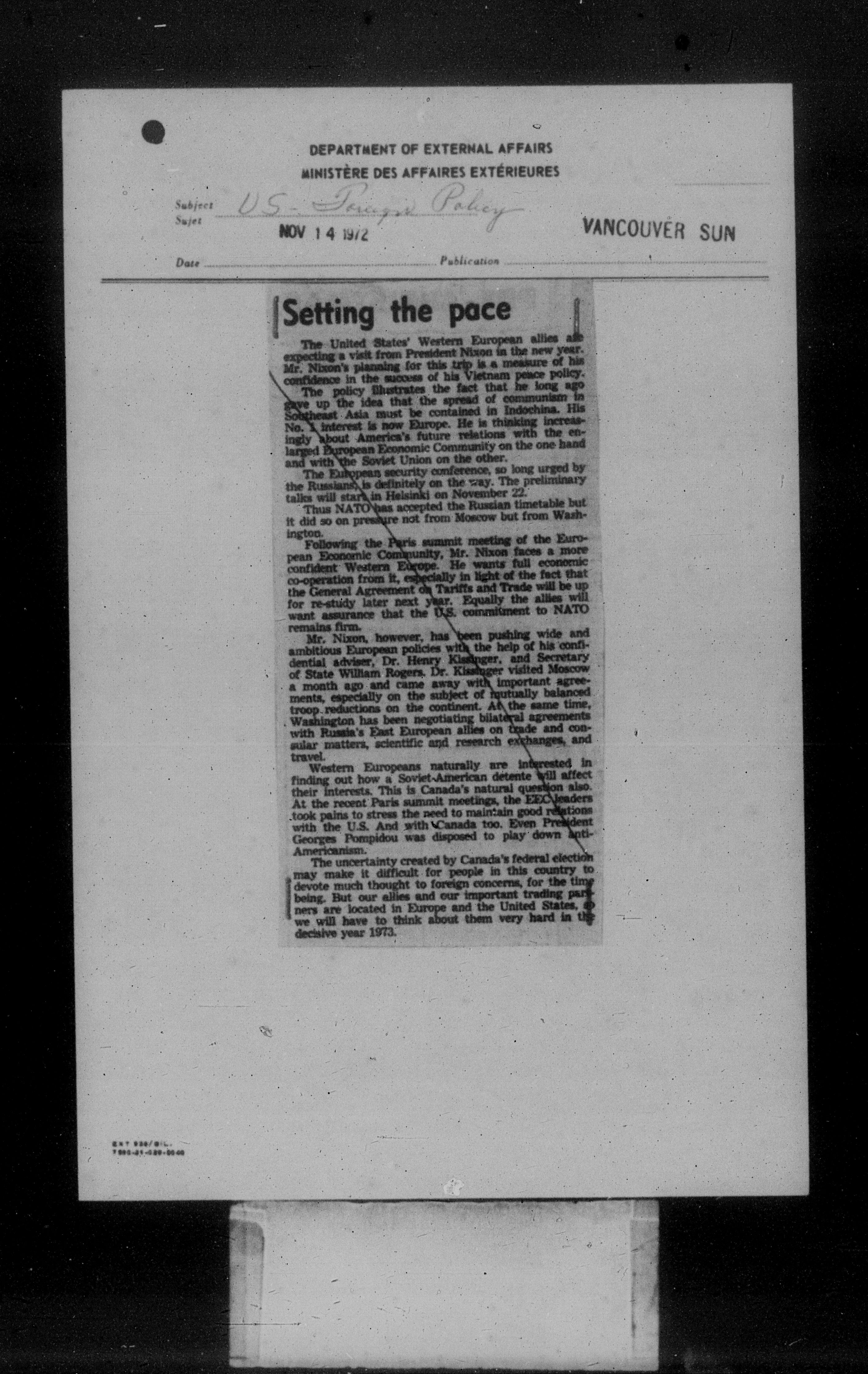 Department of External Affairs Library : newspaper clippings and manuals - 7765
