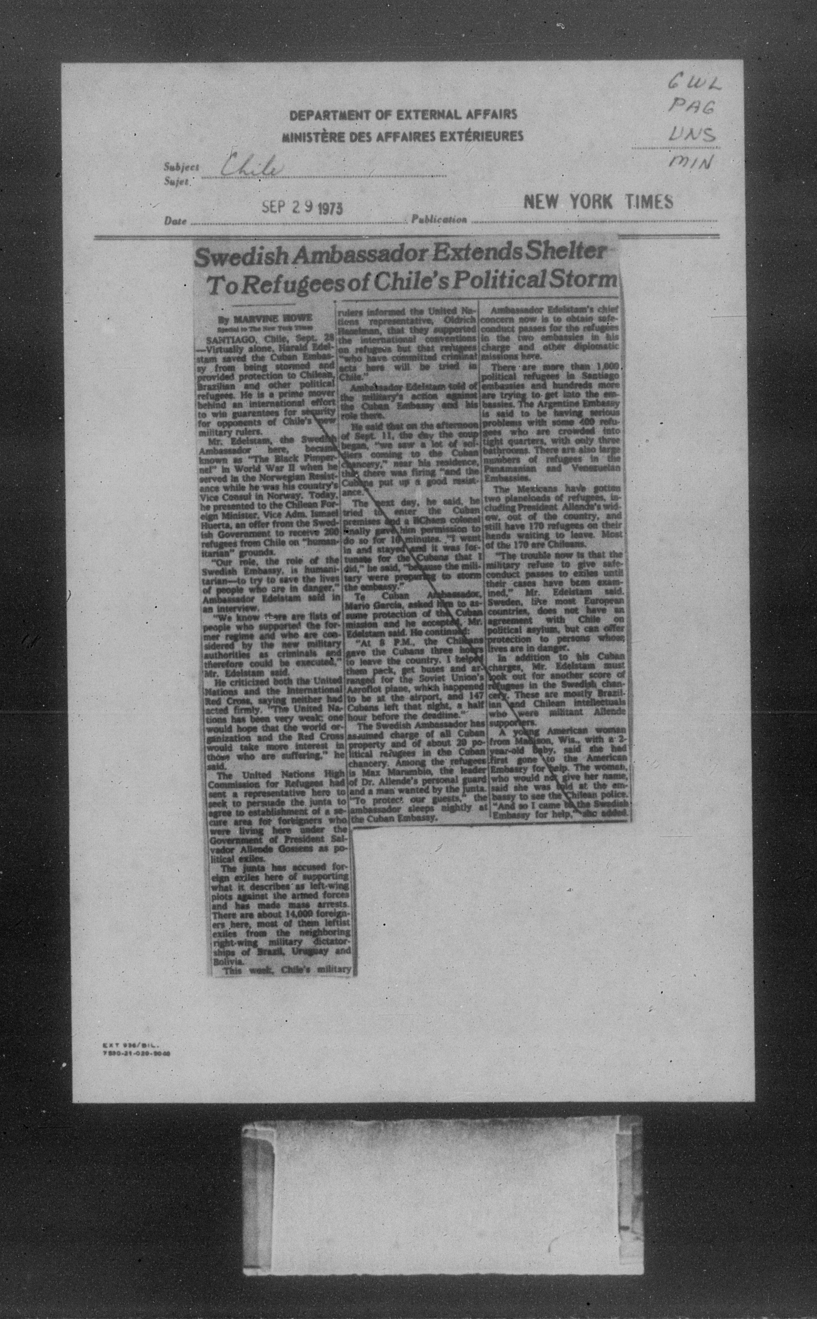 Department of External Affairs Library : newspaper clippings and manuals - 7769
