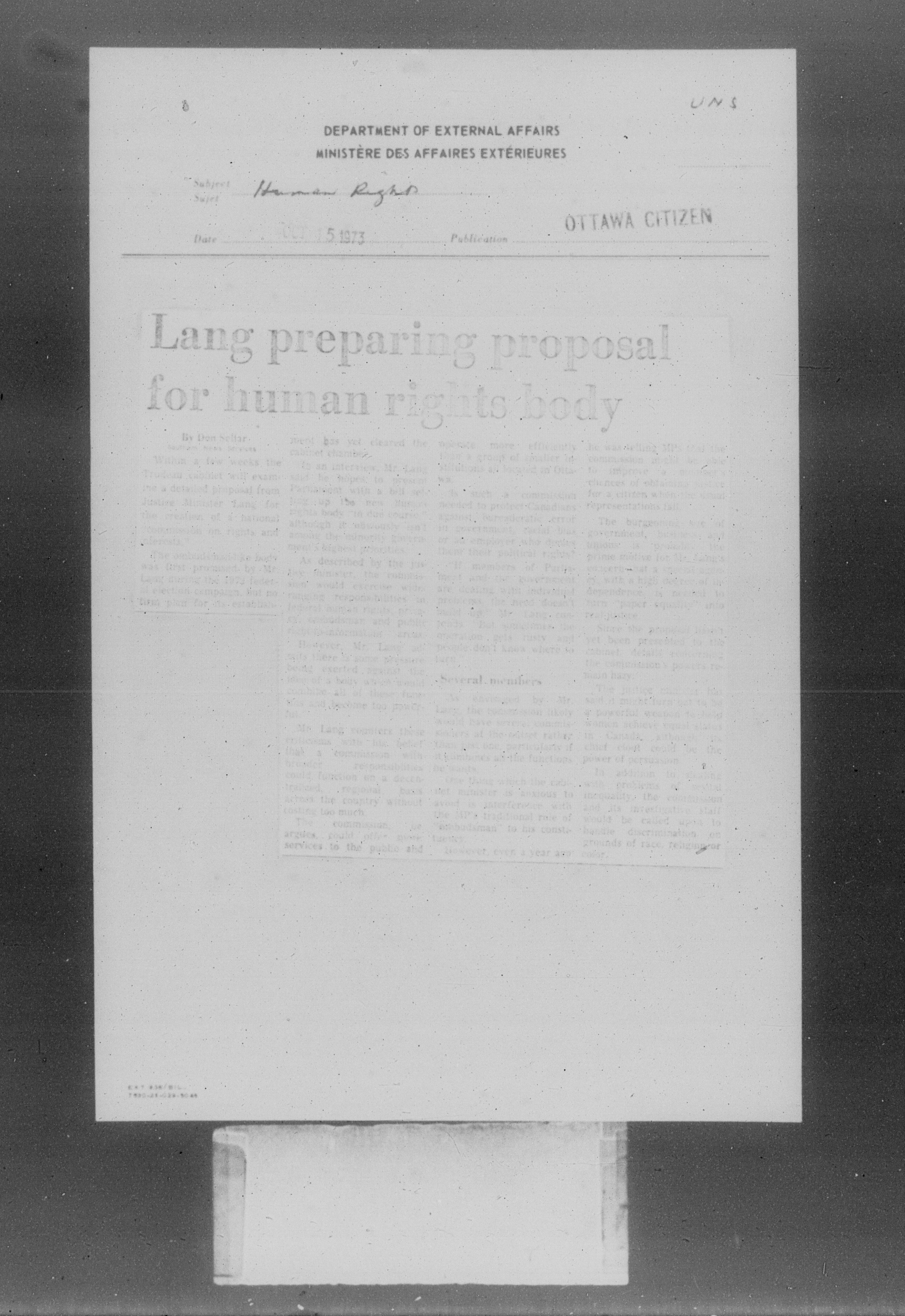 Department of External Affairs Library : newspaper clippings and manuals - 7773
