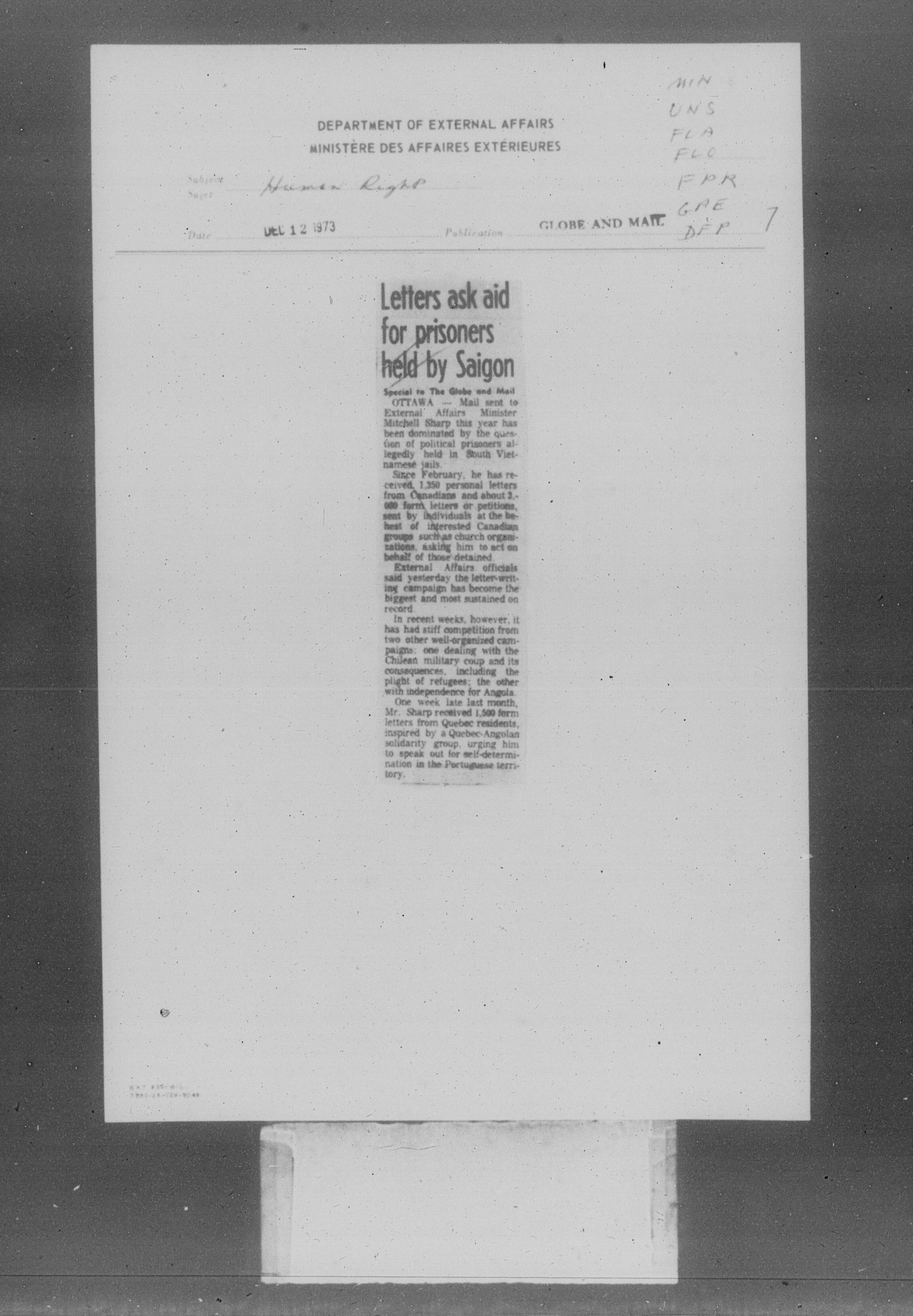 Department of External Affairs Library : newspaper clippings and manuals - 7773