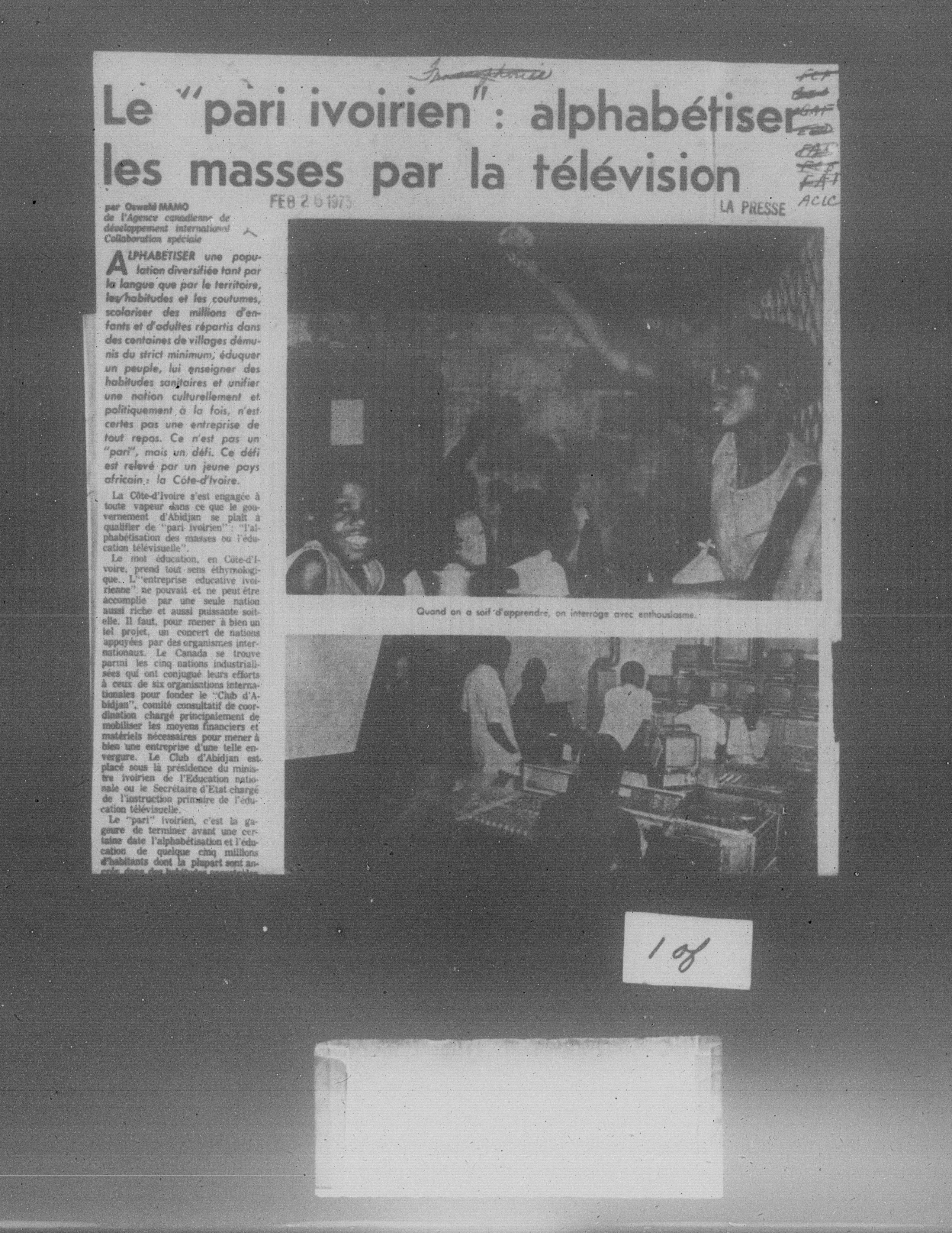Department of External Affairs Library : newspaper clippings and manuals - 7773