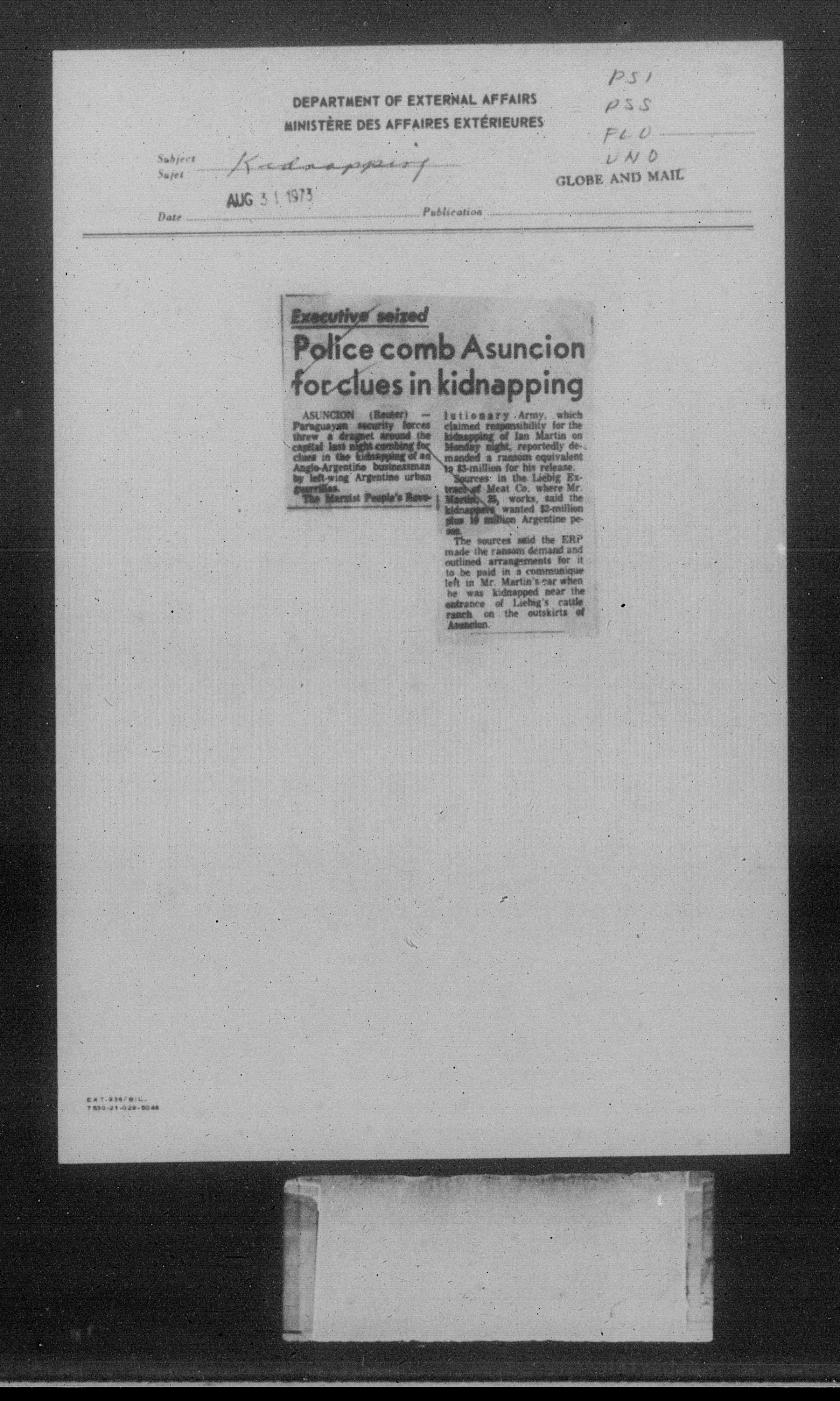Department of External Affairs Library : newspaper clippings and manuals - 7776
