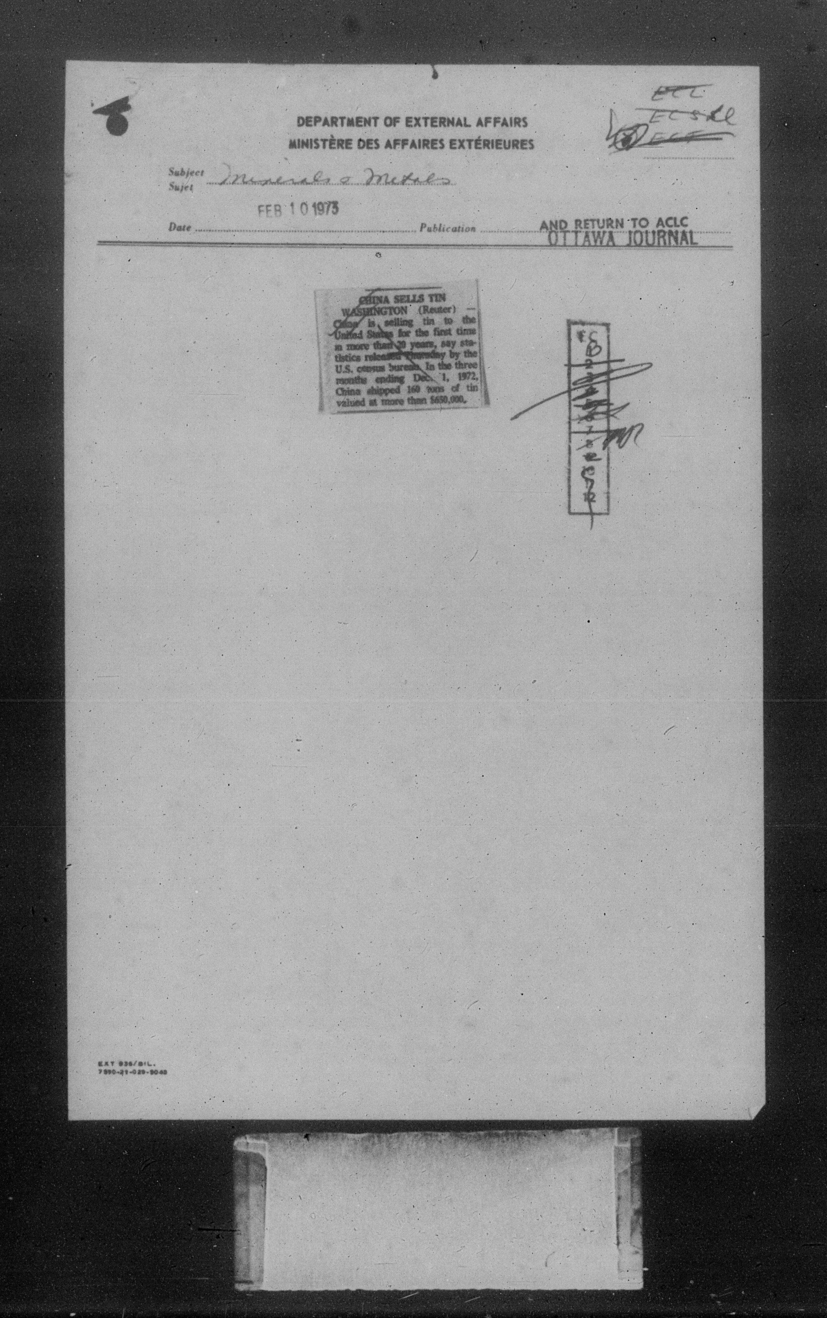 Department of External Affairs Library : newspaper clippings and manuals : C-7777