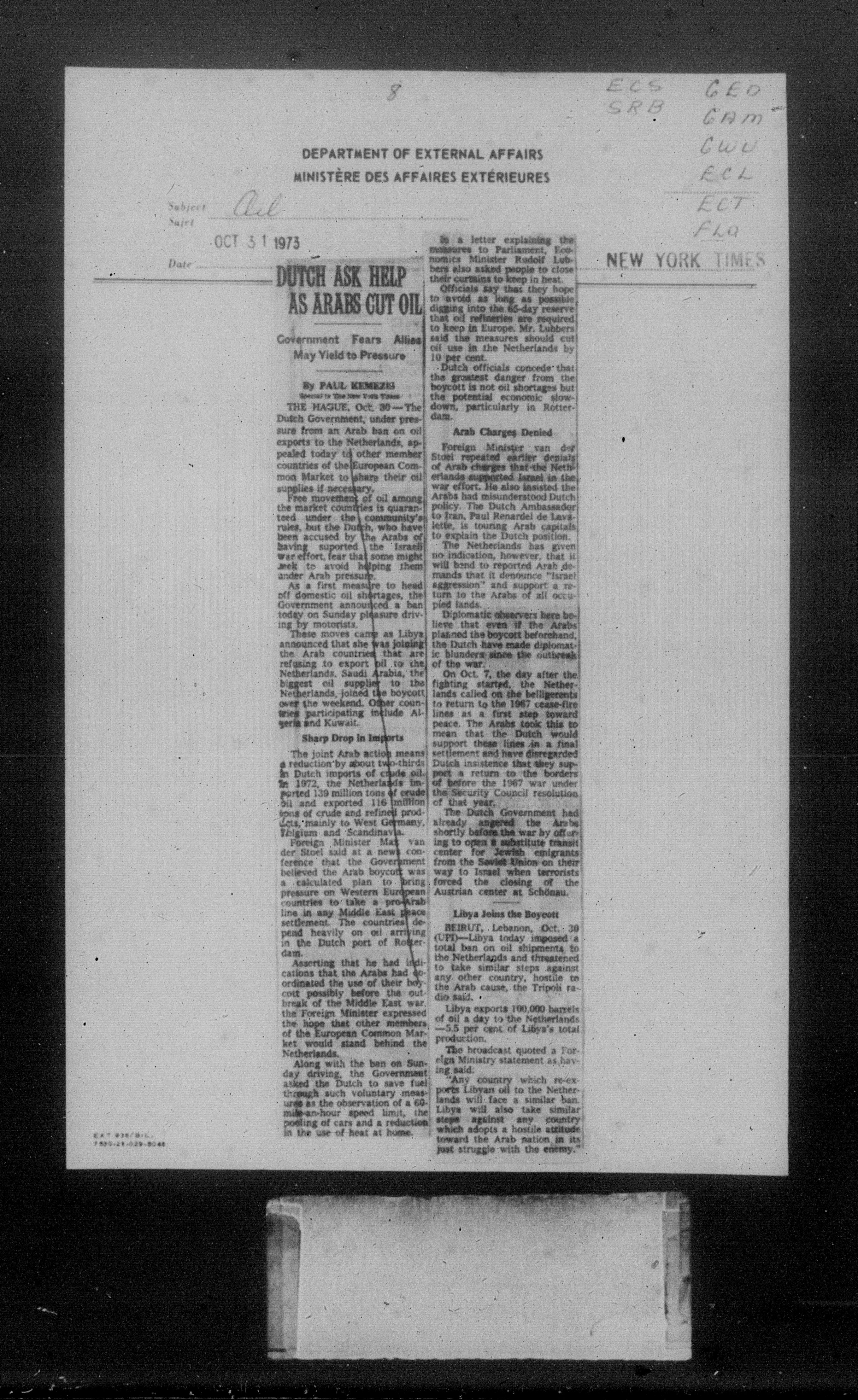 Department of External Affairs Library : newspaper clippings and manuals : C-7779