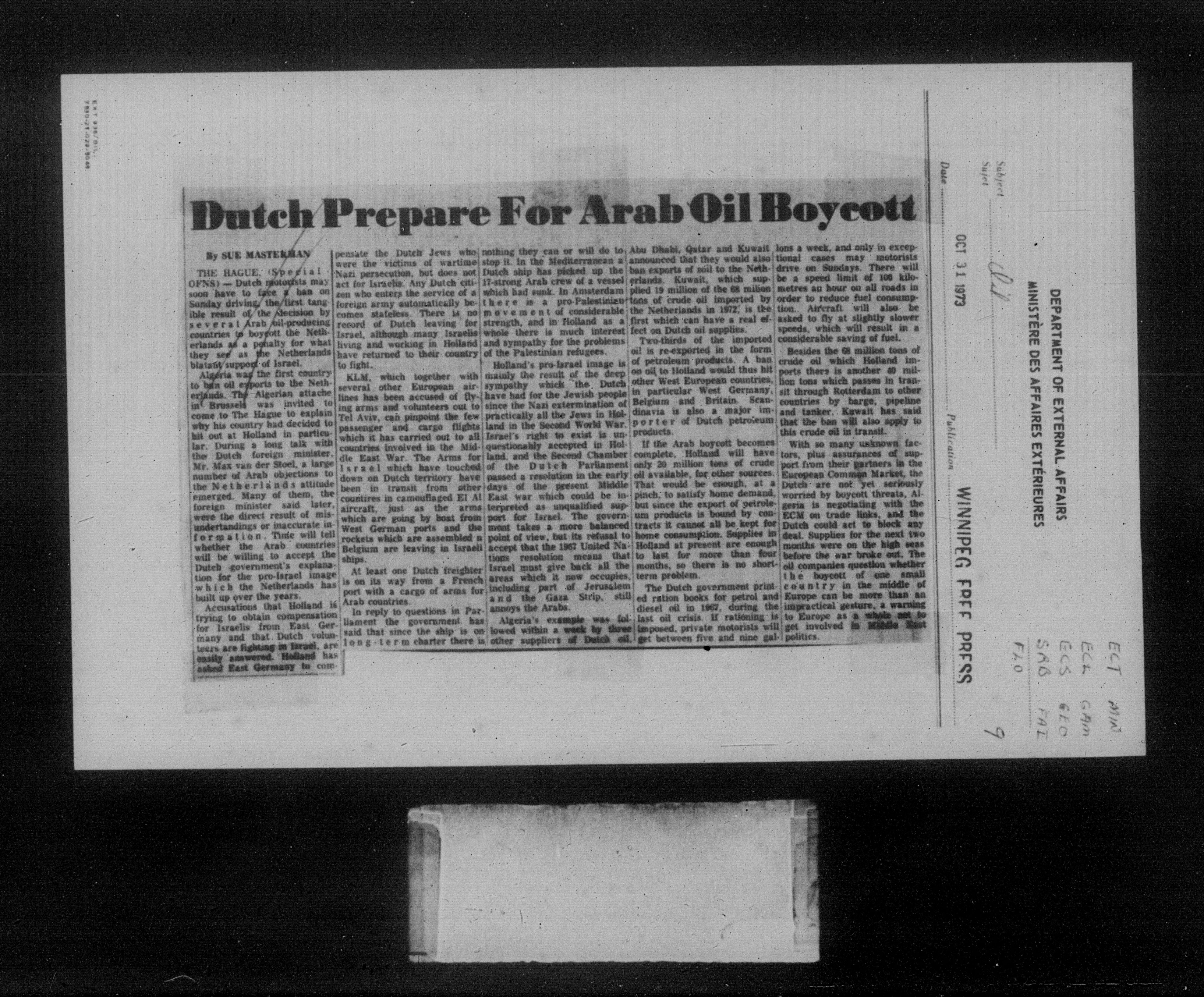 Department of External Affairs Library : newspaper clippings and manuals - 7779