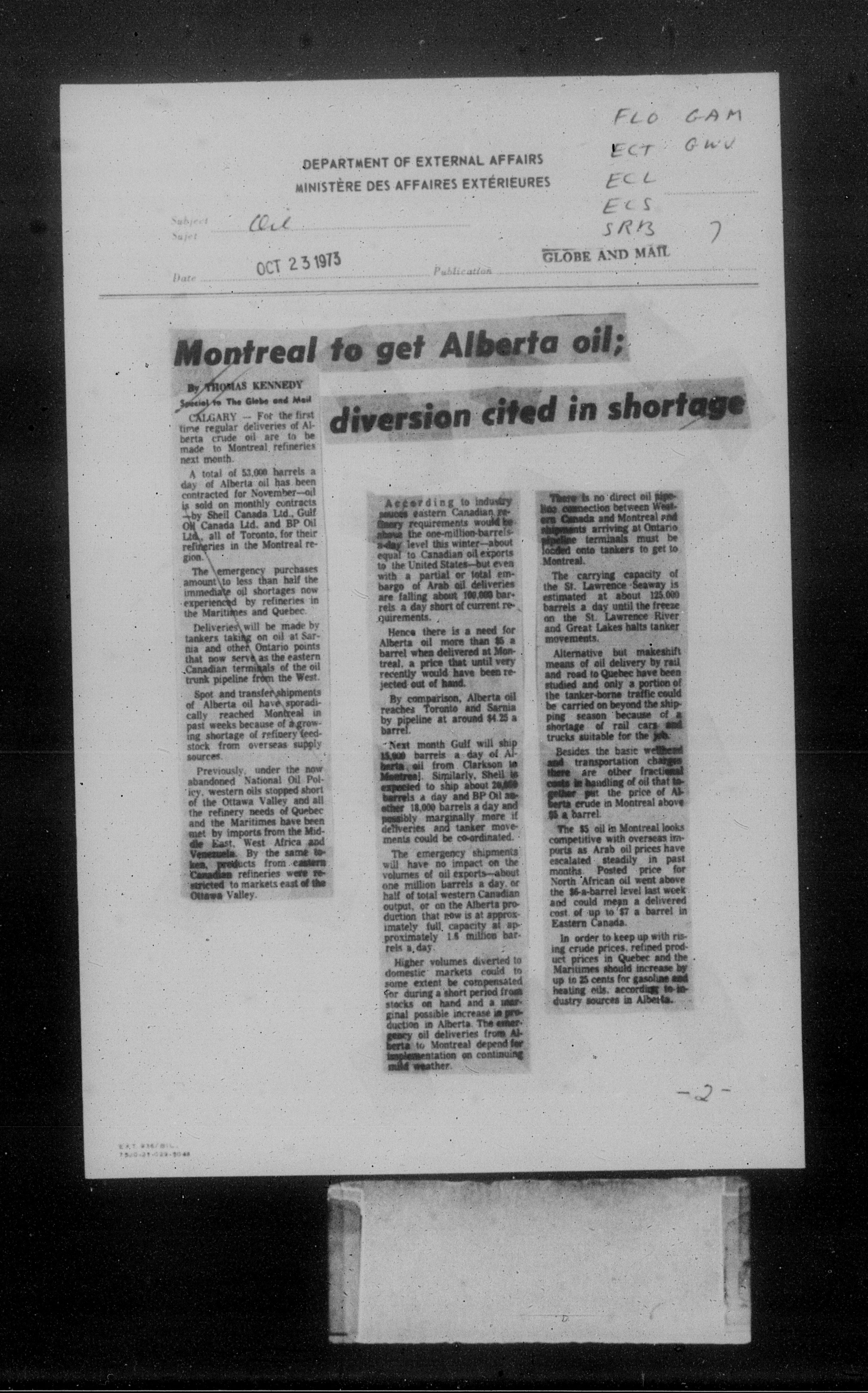 Department of External Affairs Library : newspaper clippings and manuals : C-7779