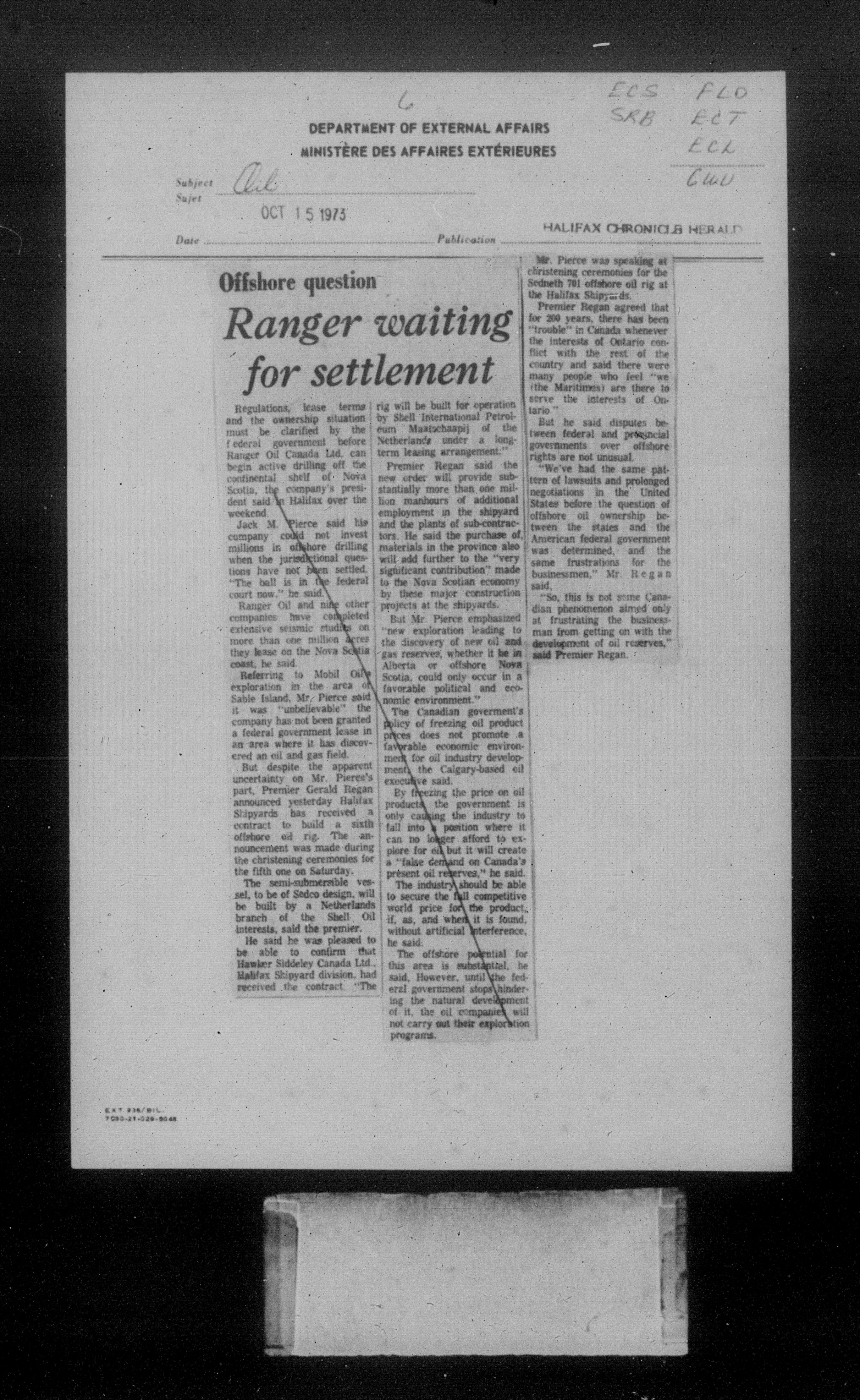 Department of External Affairs Library : newspaper clippings and manuals - 7779
