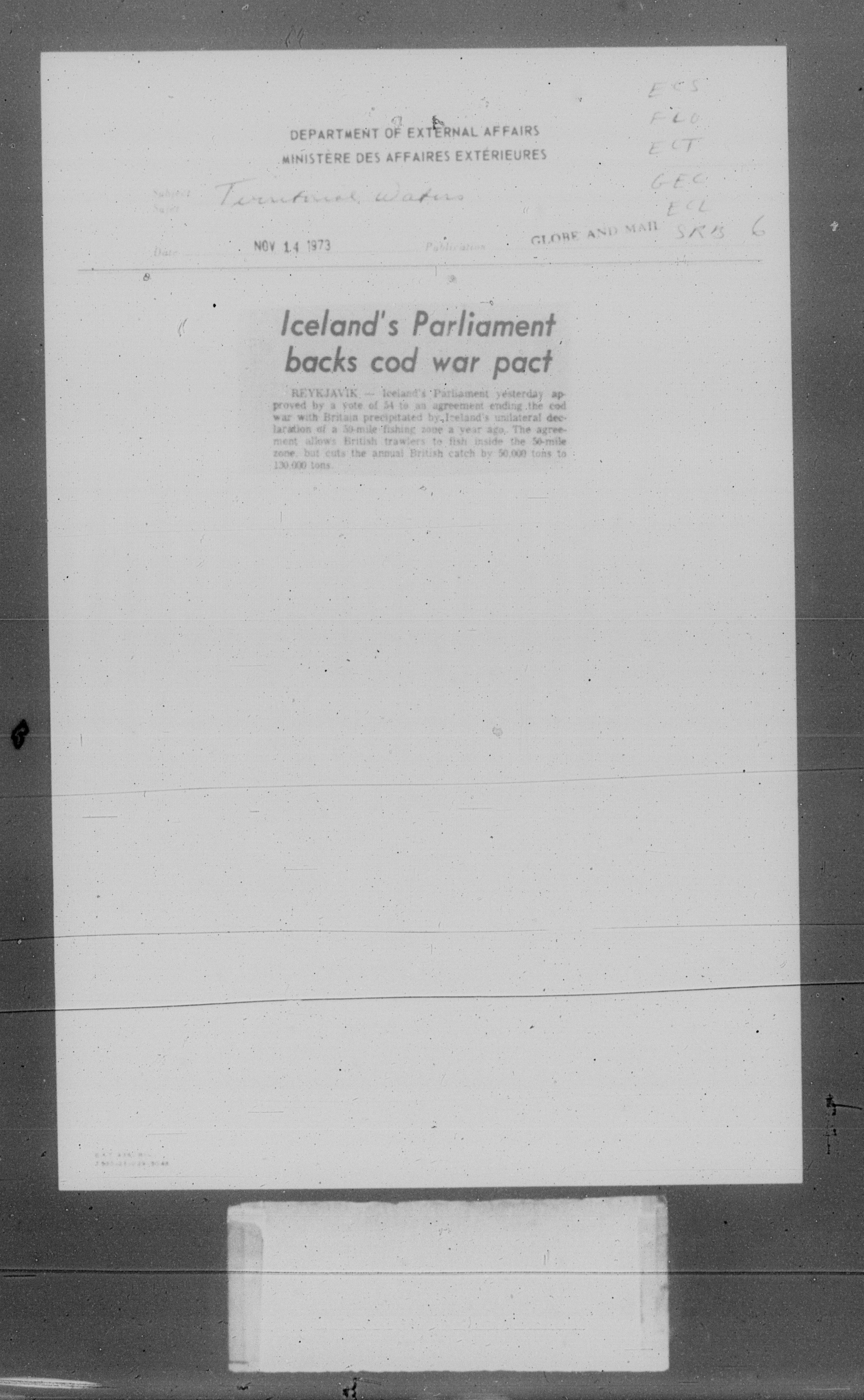 Department of External Affairs Library : newspaper clippings and manuals - 7781
