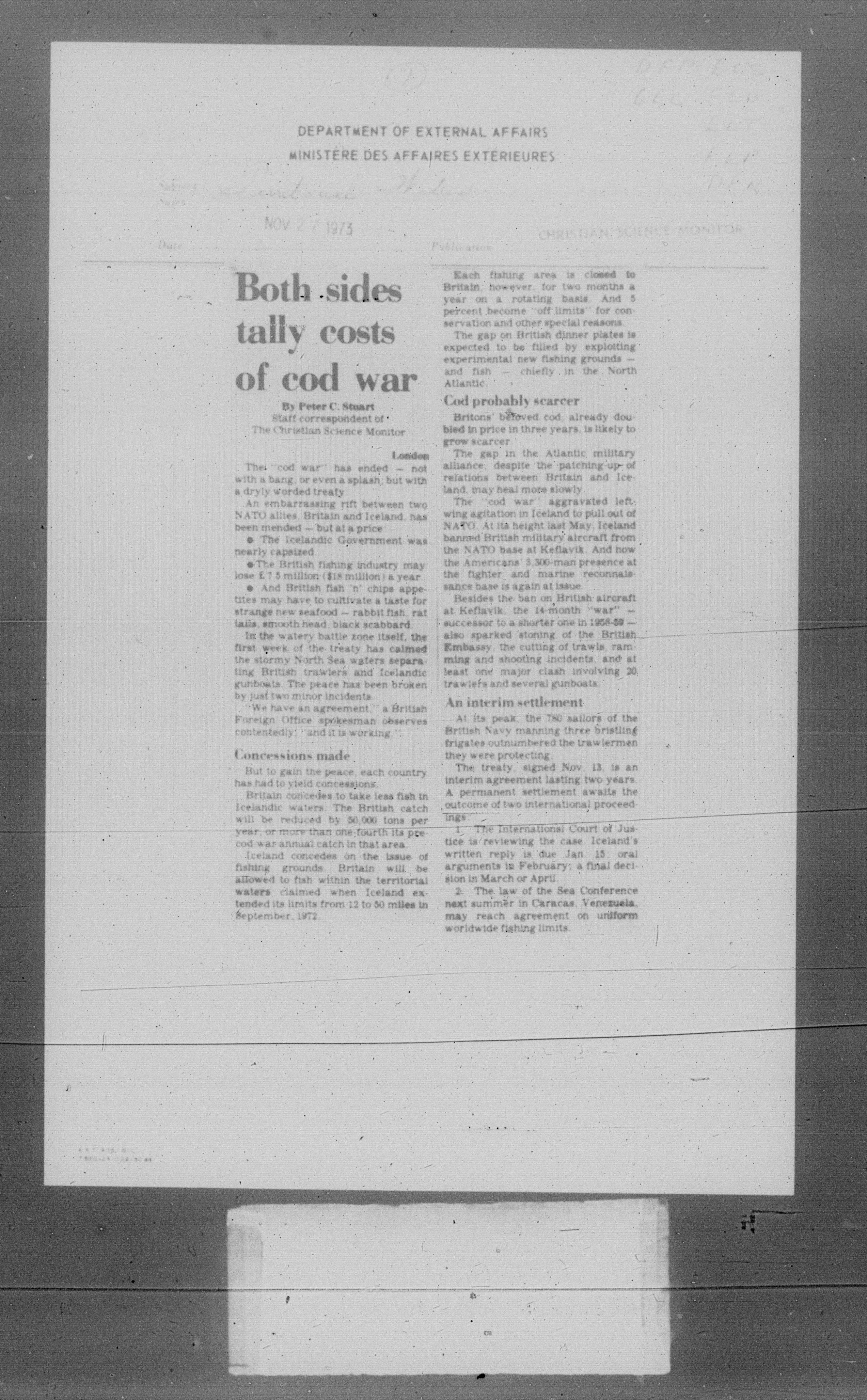 Department of External Affairs Library : newspaper clippings and manuals - 7781