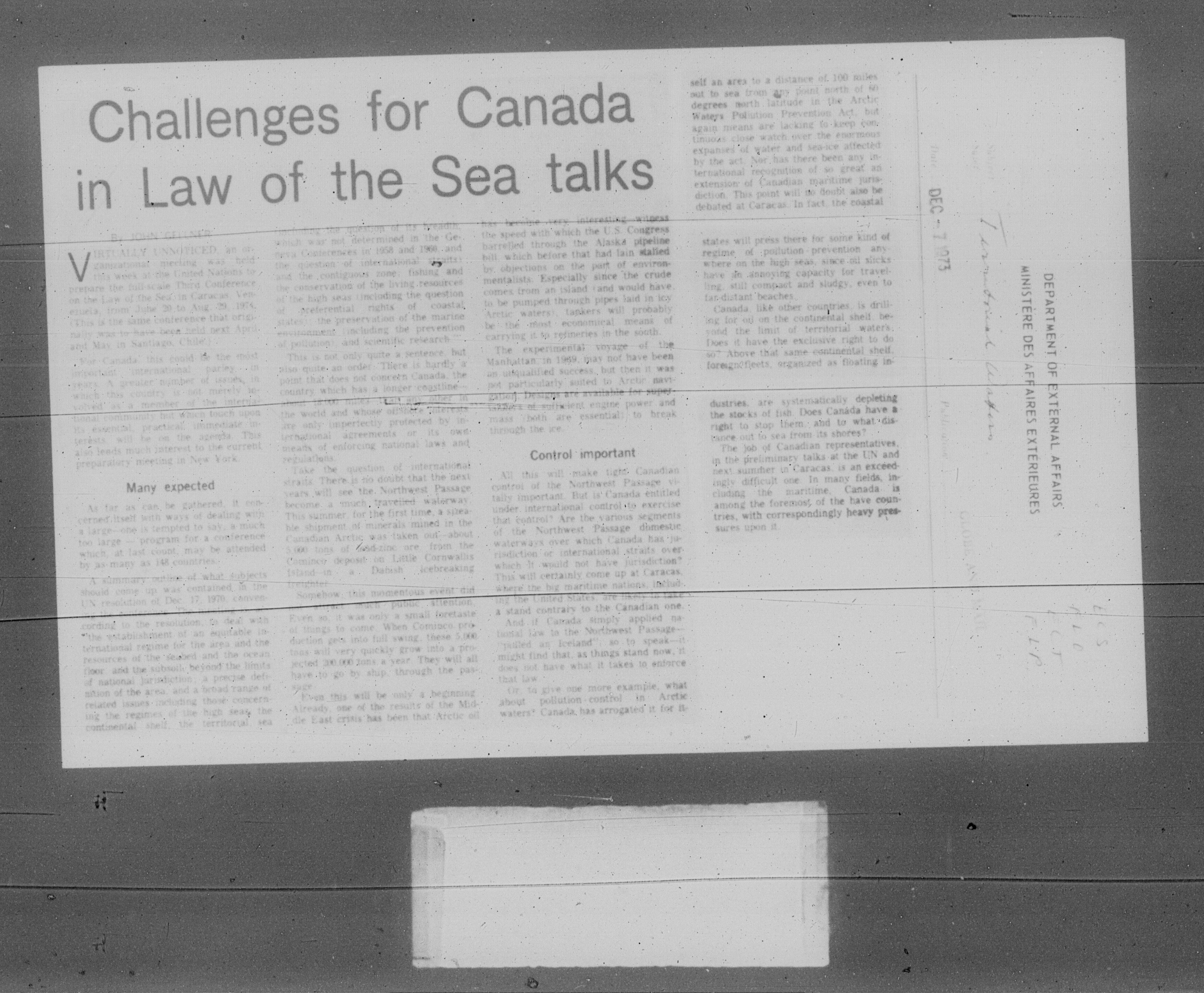 Department of External Affairs Library : newspaper clippings and manuals : C-7781