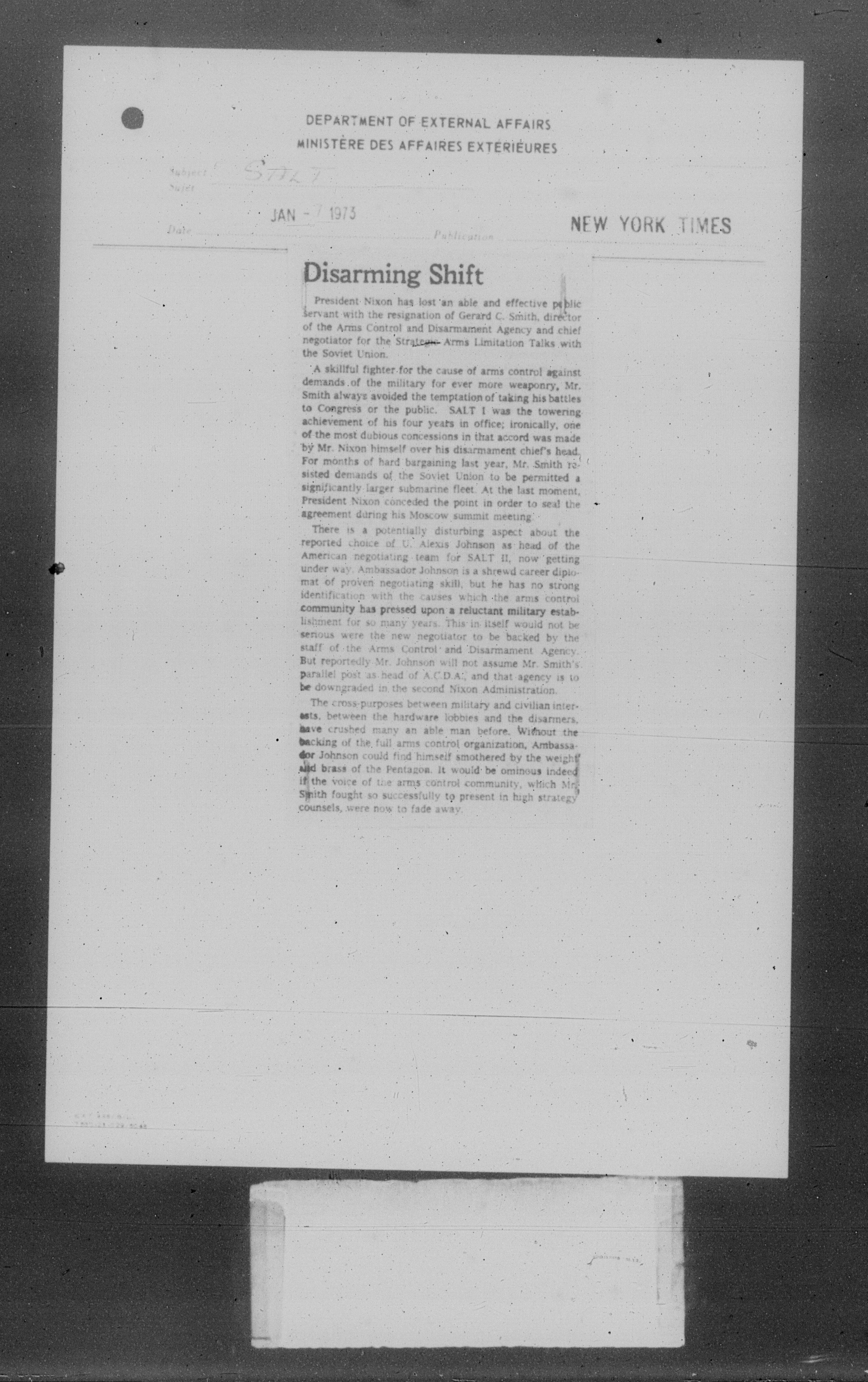 Department of External Affairs Library : newspaper clippings and manuals - 7781