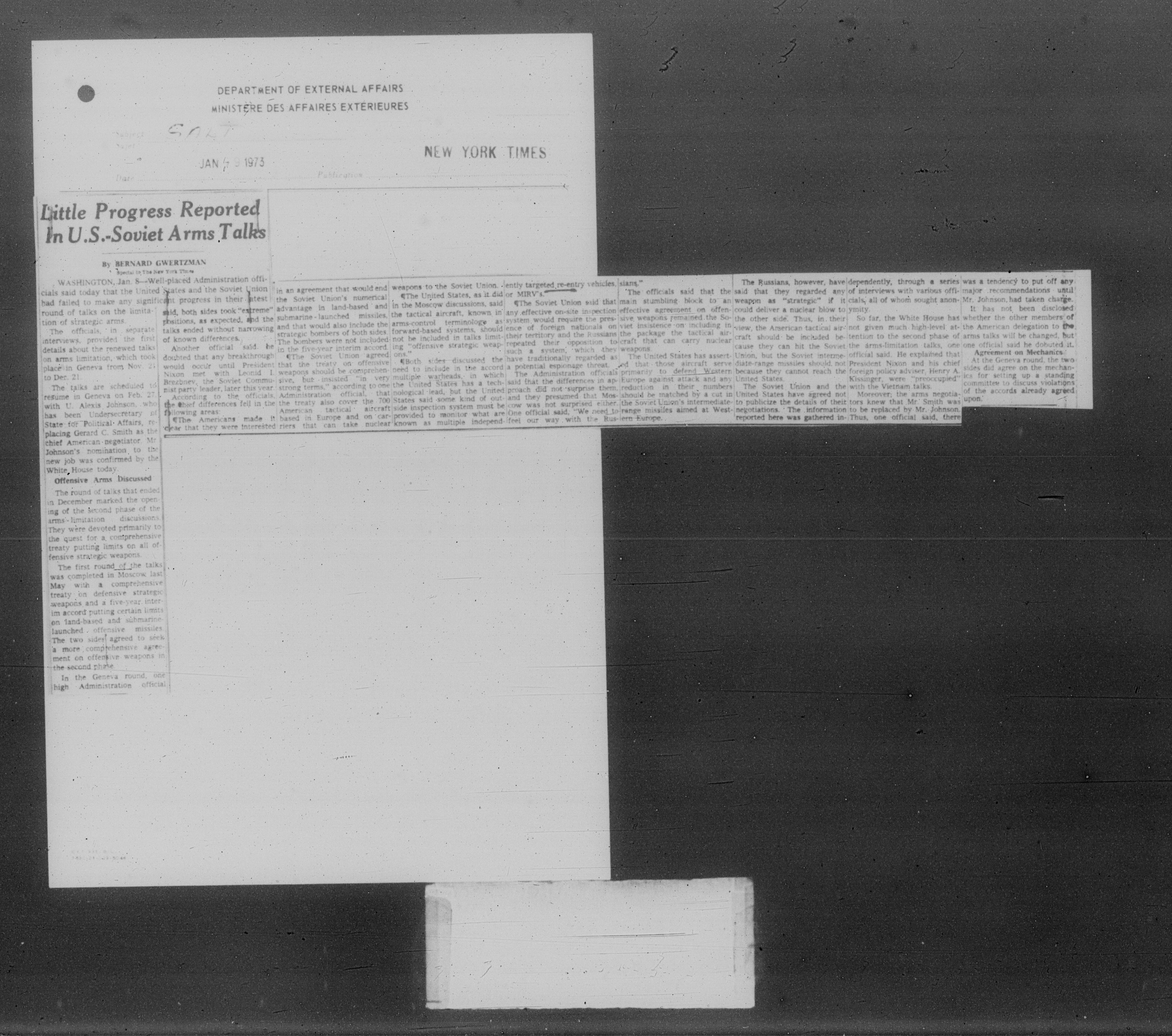 Department of External Affairs Library : newspaper clippings and manuals - 7781