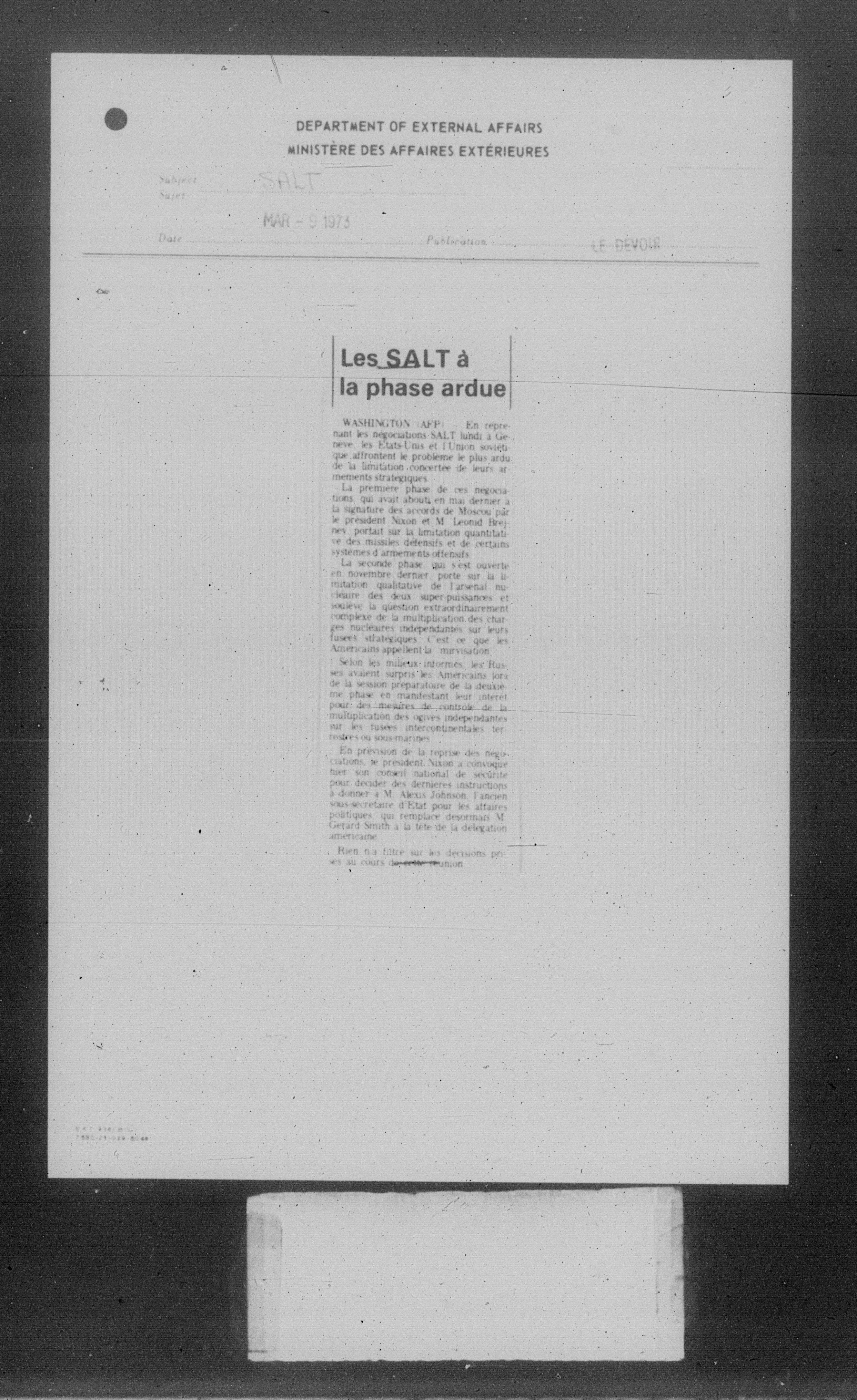 Department of External Affairs Library : newspaper clippings and manuals - 7781