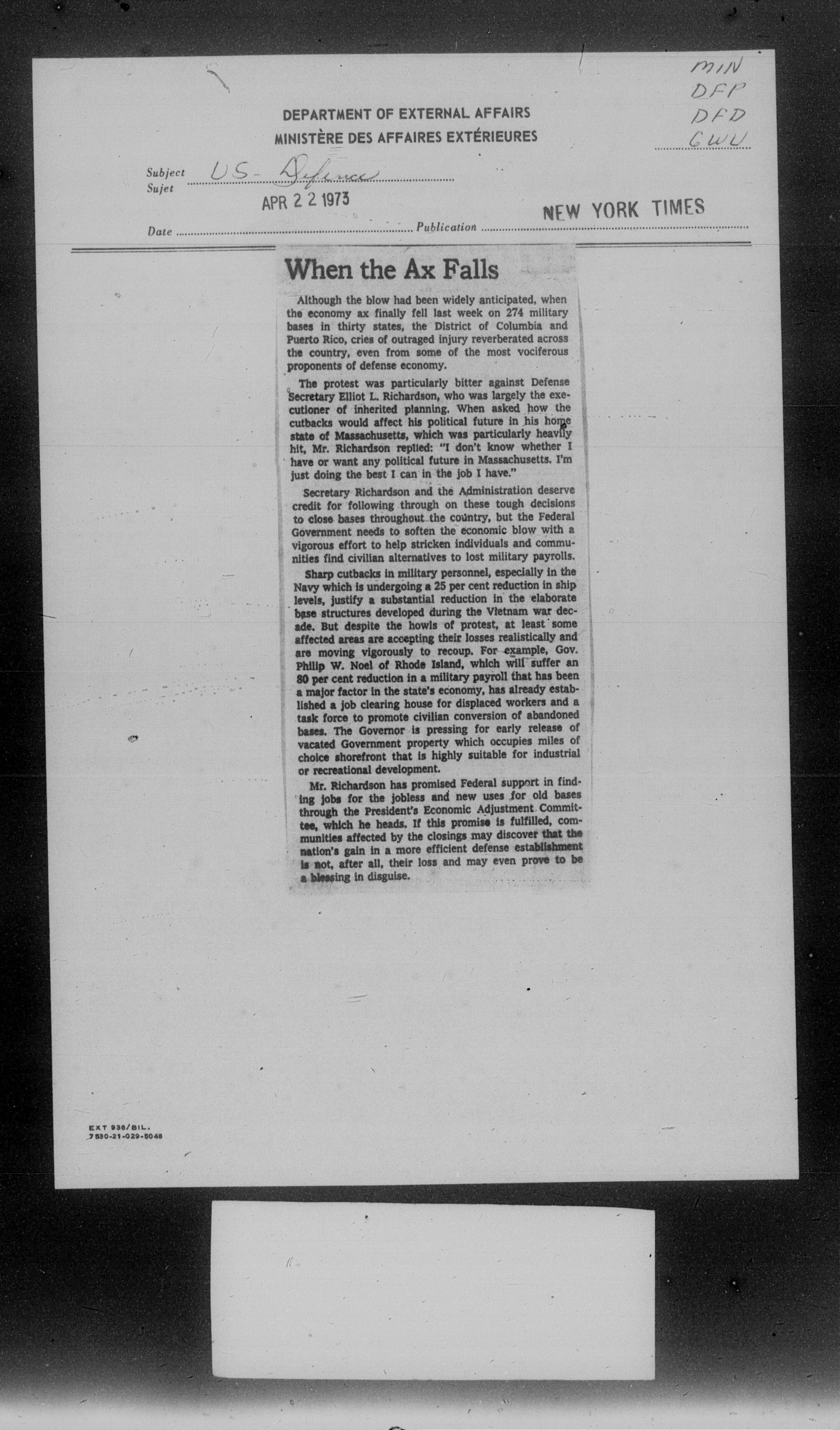 Department of External Affairs Library : newspaper clippings and manuals - 7783