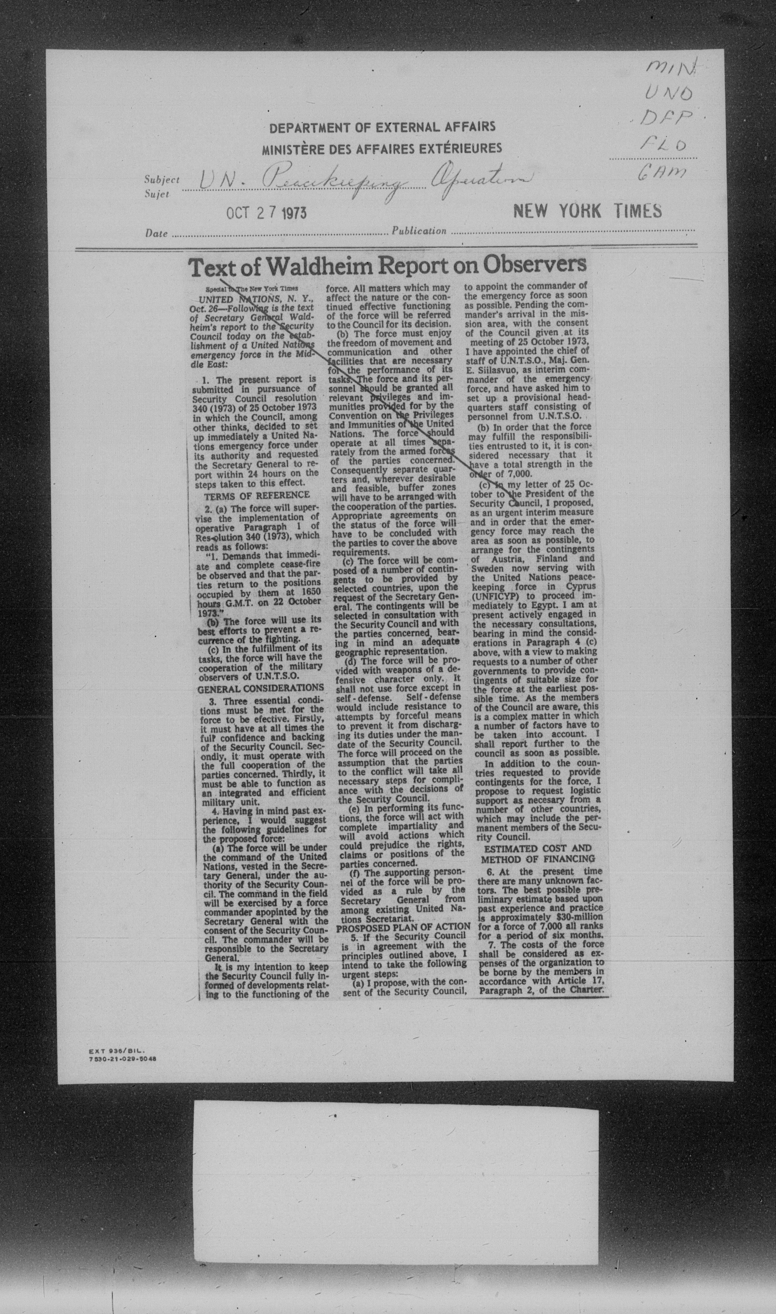 Department of External Affairs Library : newspaper clippings and manuals - 7783
