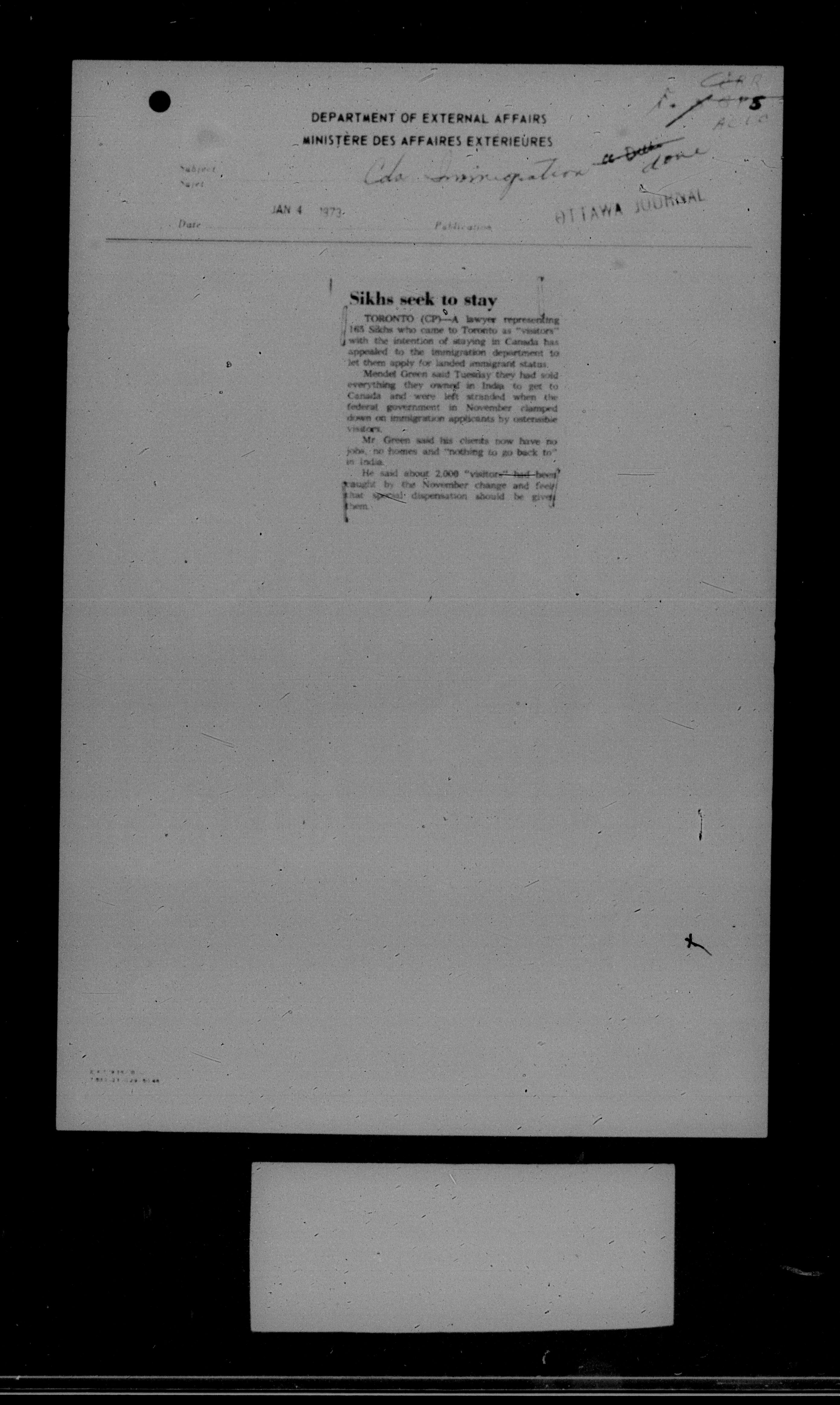 Department of External Affairs Library : newspaper clippings and manuals - 7789