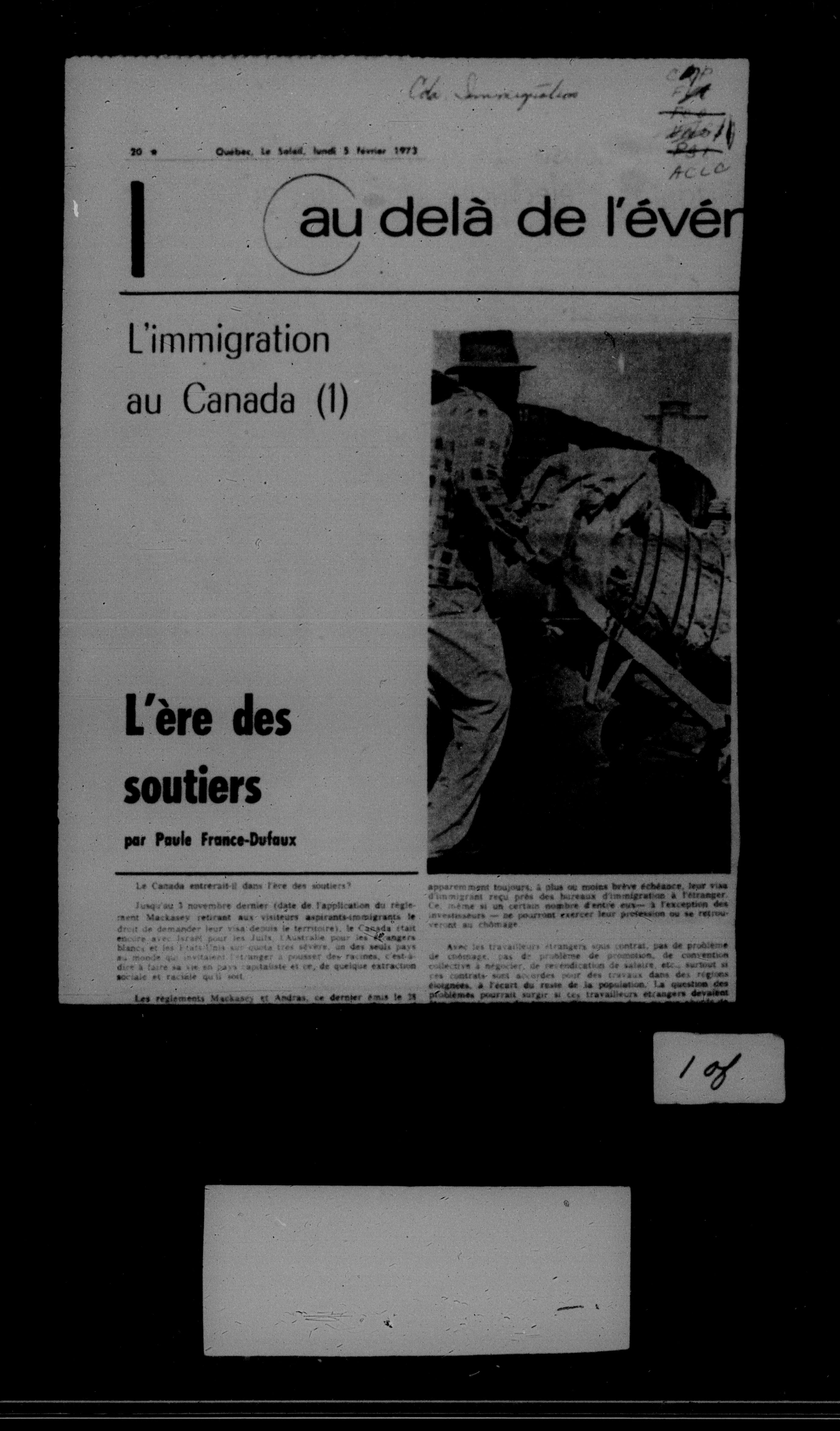 Department of External Affairs Library : newspaper clippings and manuals - 7789