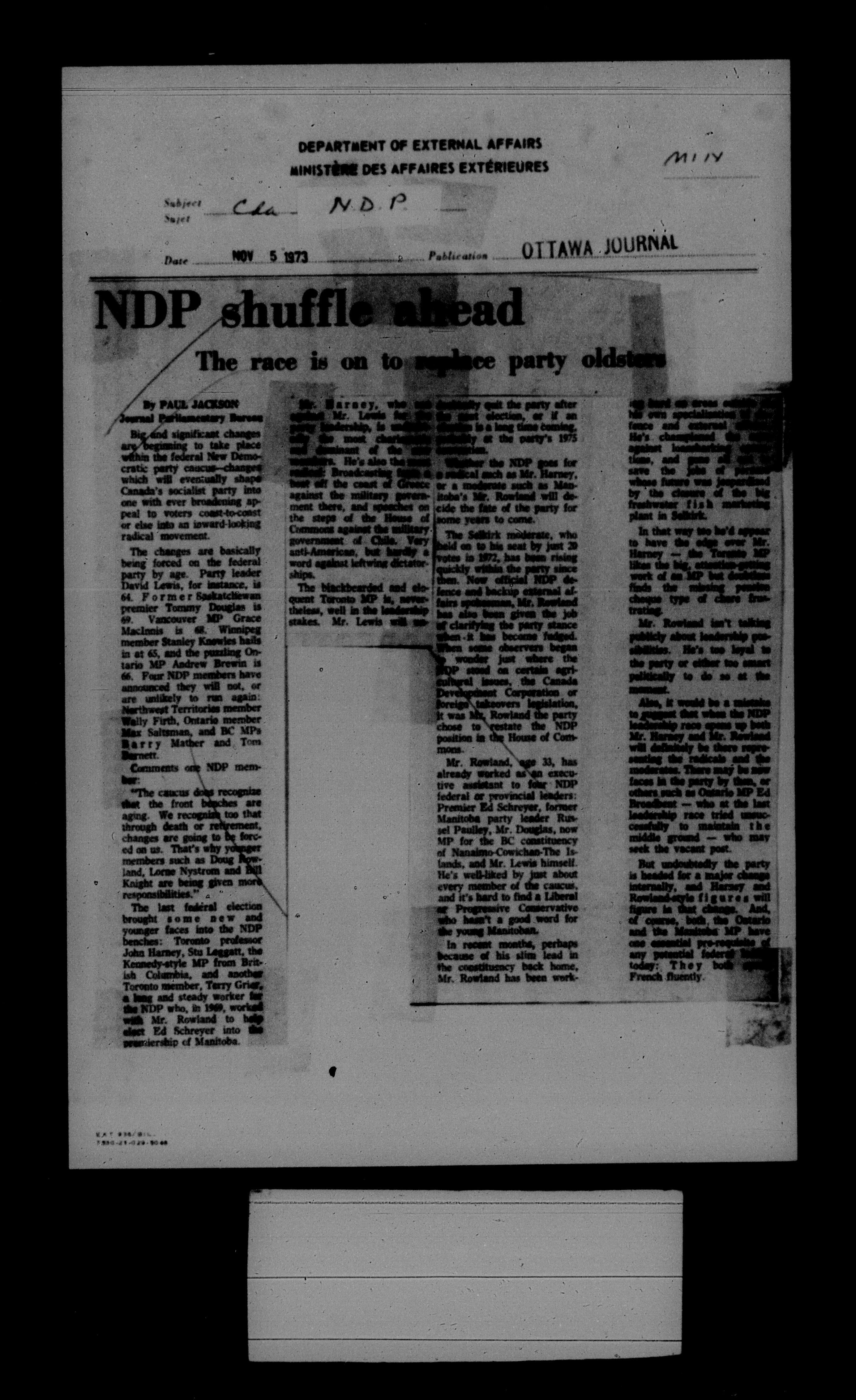 Department of External Affairs Library : newspaper clippings and manuals - 7790