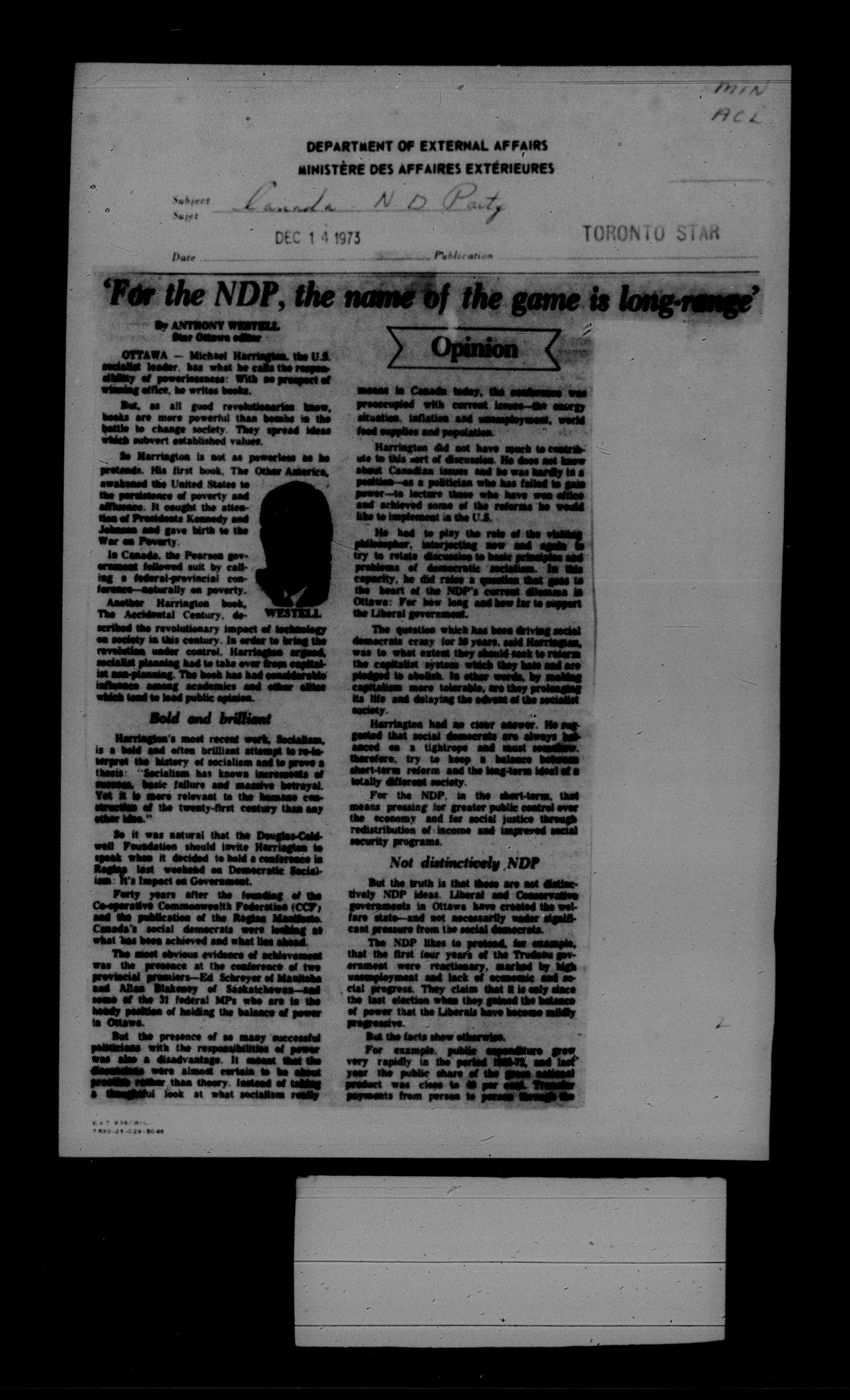 Department of External Affairs Library : newspaper clippings and manuals - 7790