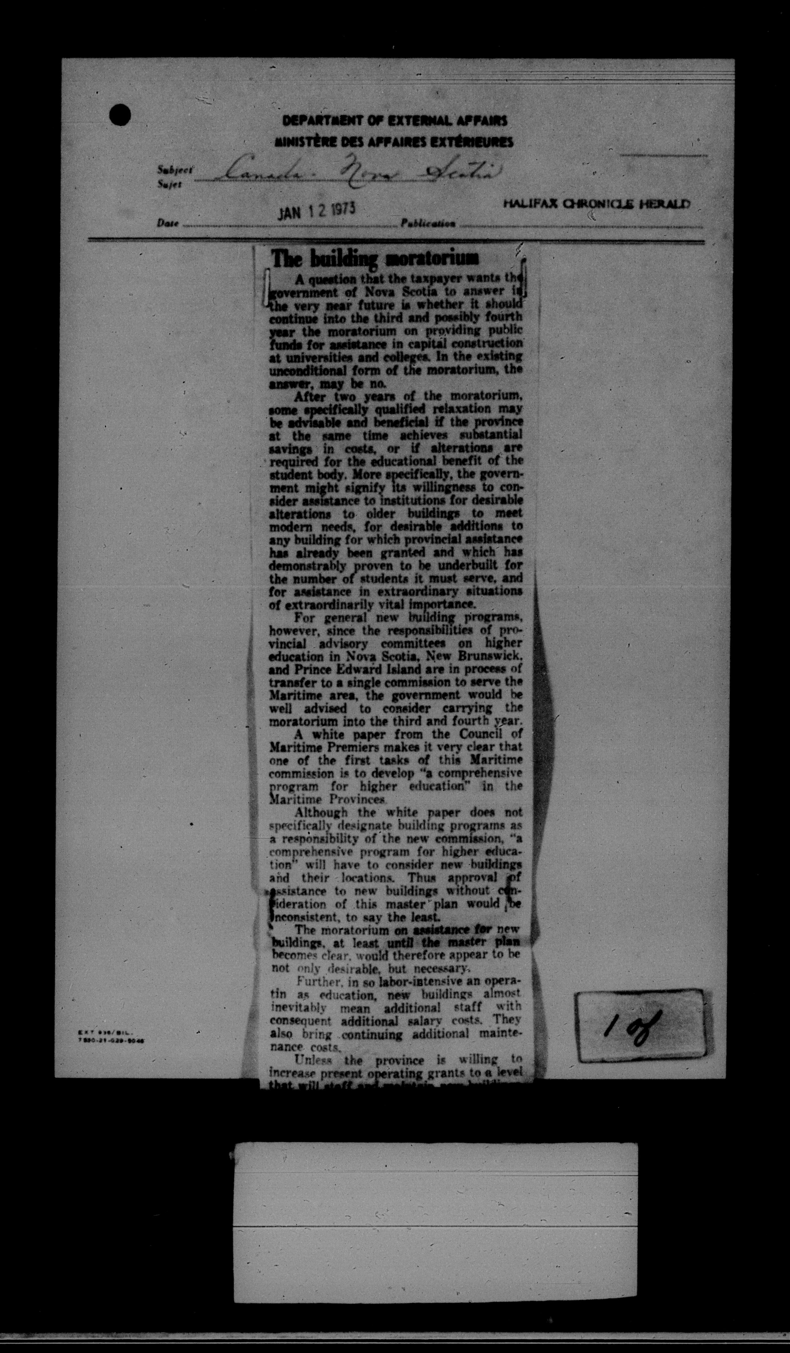 Department of External Affairs Library : newspaper clippings and manuals : C-7790